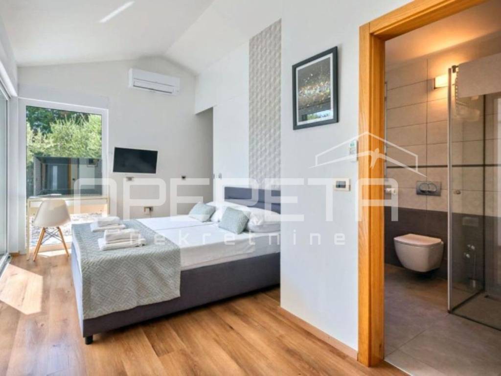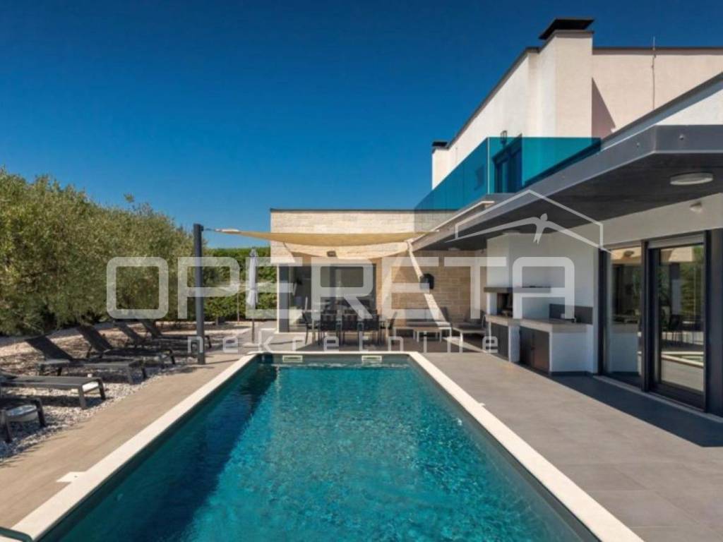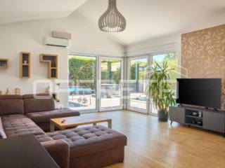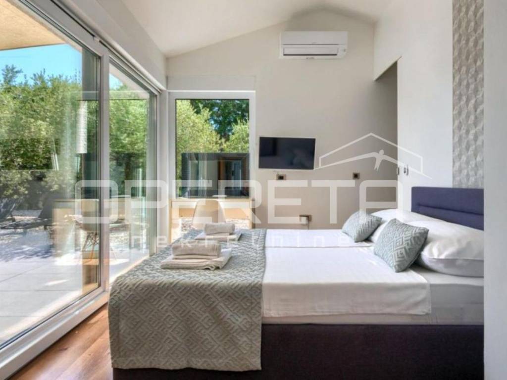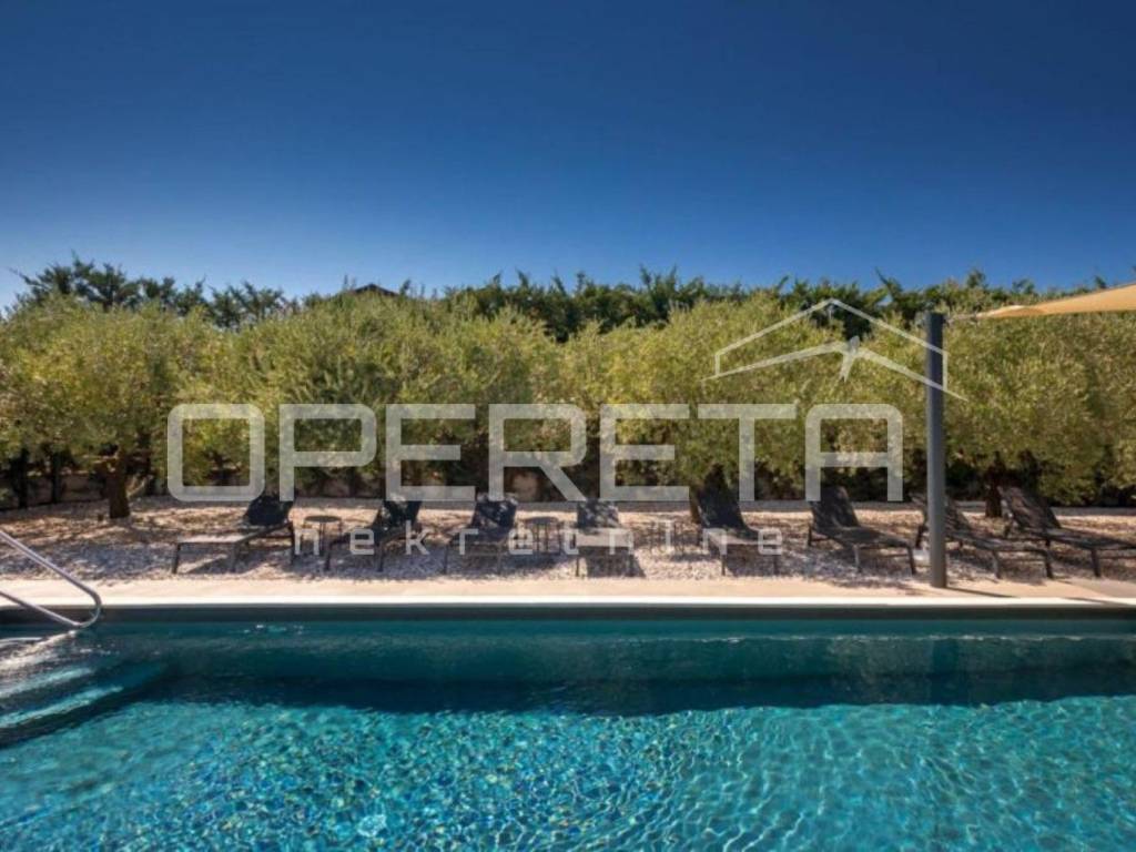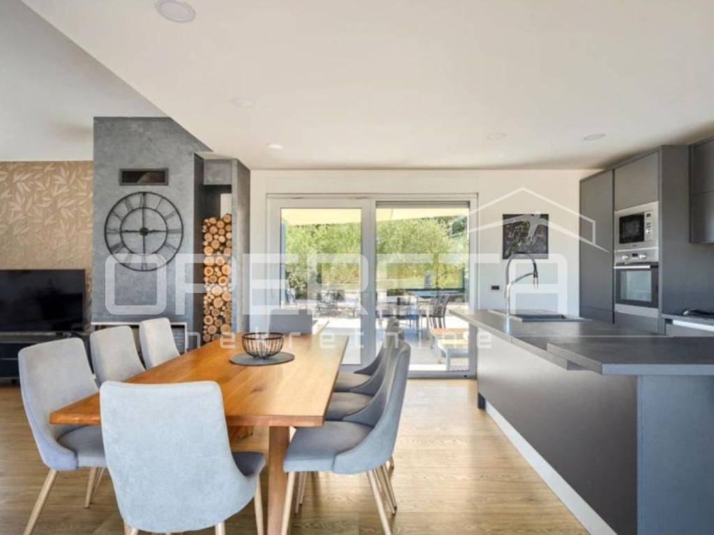 This house of modern architecture, spanning 250 m, is located in a quiet settlement in the vicinity of Poreč and extends through three floors.