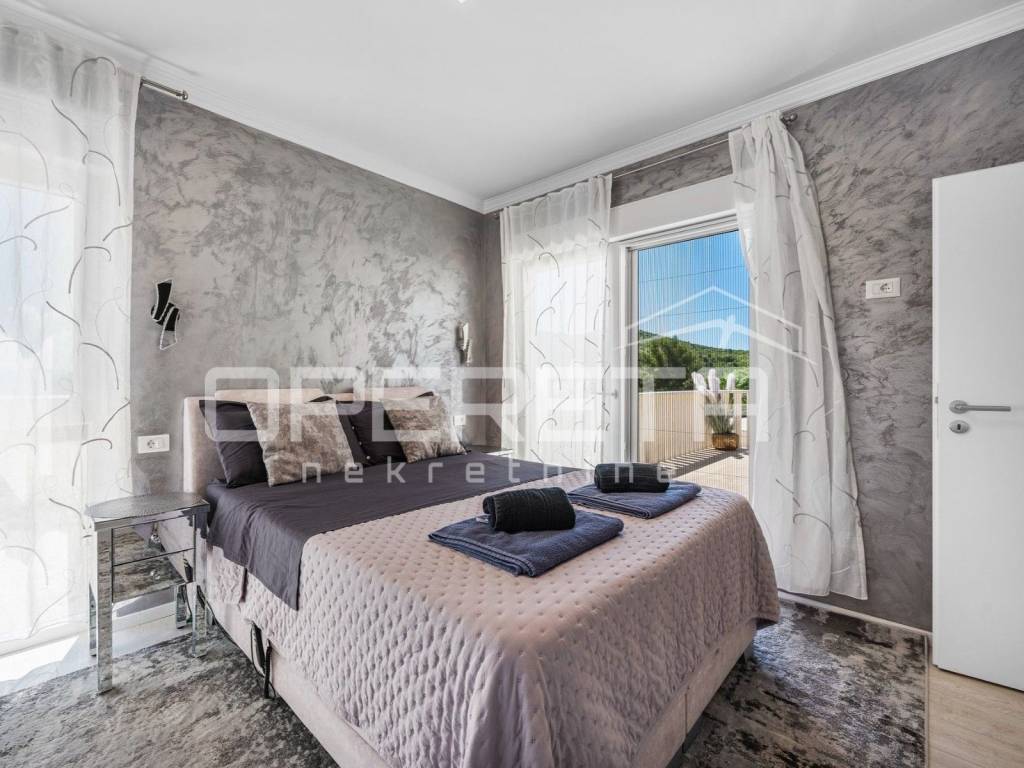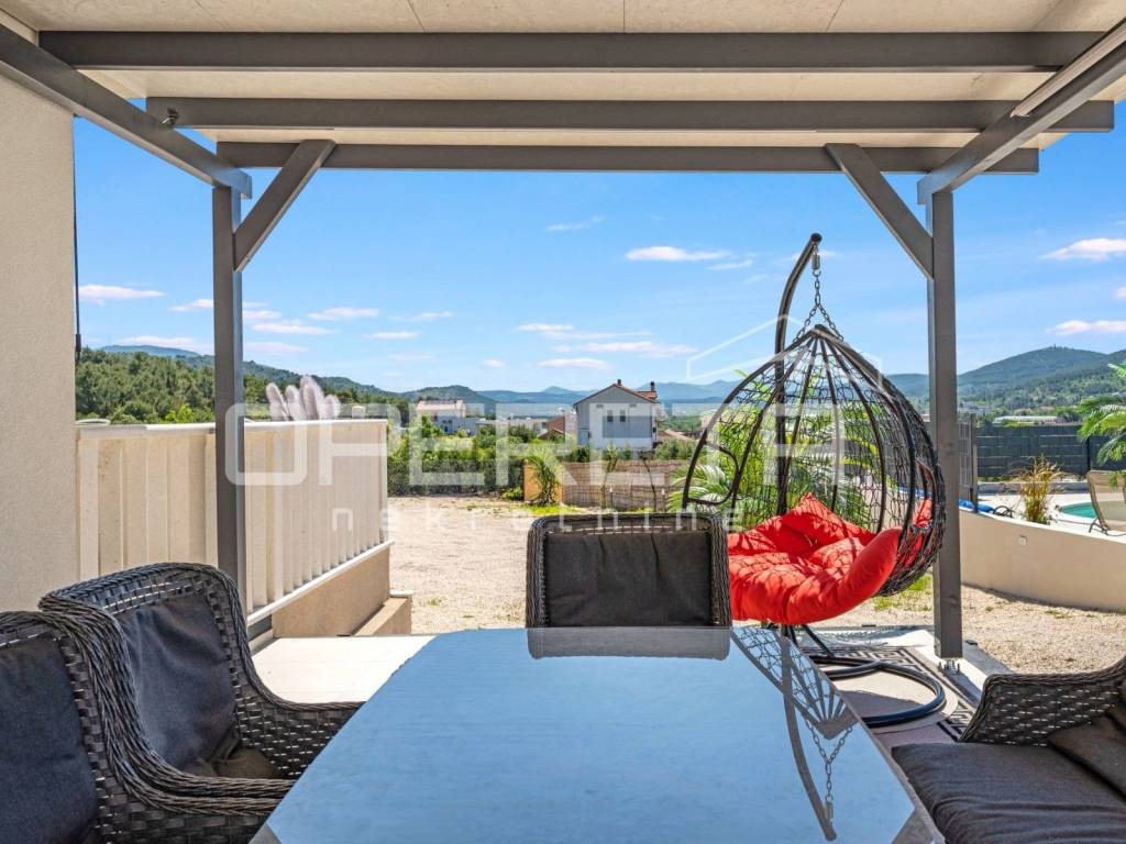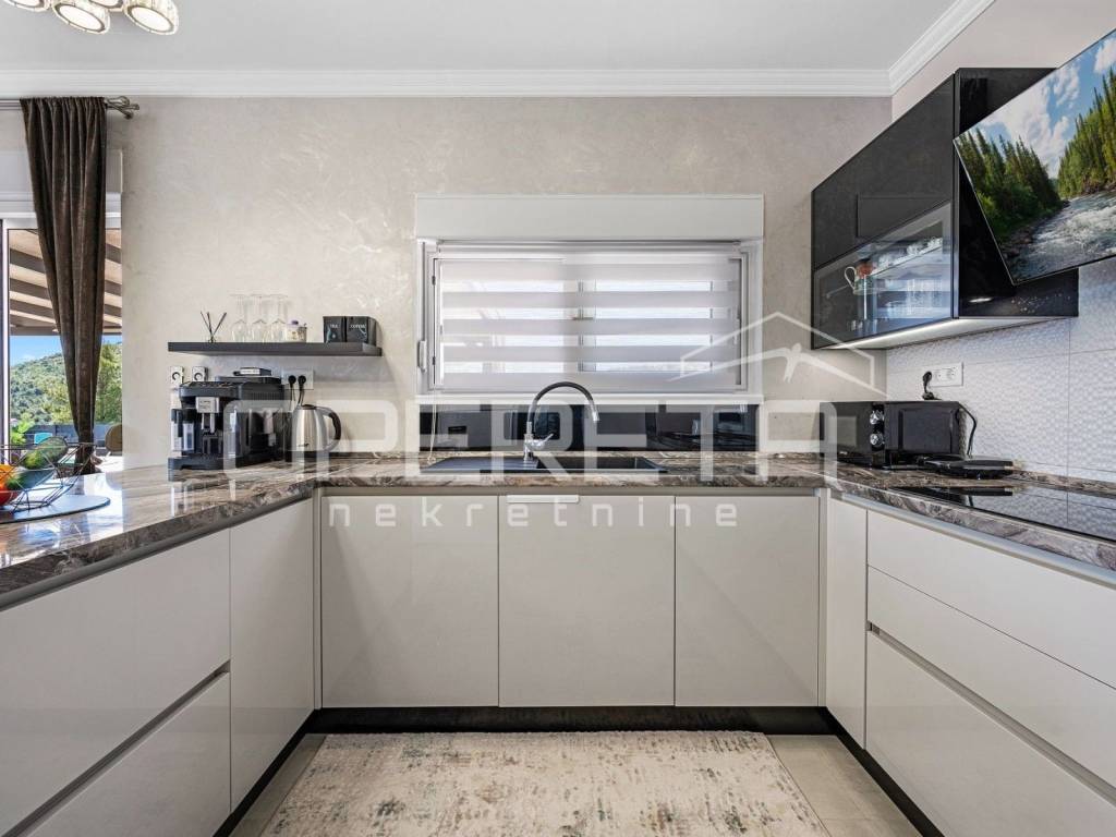 In the village of Bilice near Šibenik, in a quiet and natural environment, a luxury single-storey house built in 2021 is for sale.
