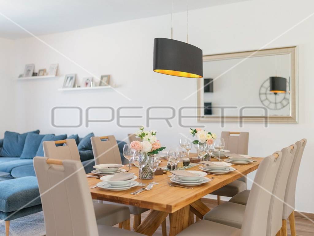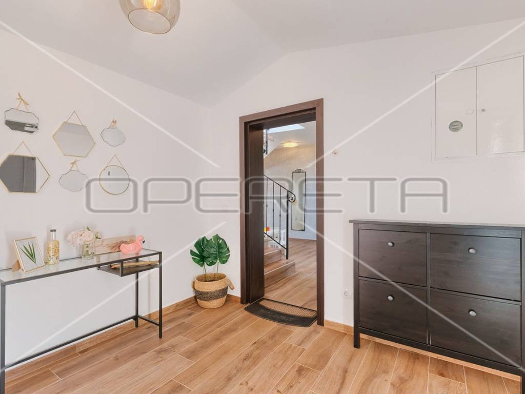 Completely fenced and landscaped garden, in the front part of the yard with two parking spaces, while in the back part there is a 25 m2 swimming pool with a sunbathing area, a lounge area and a covered terrace - a tavern with a fireplace, perfect for socializing.