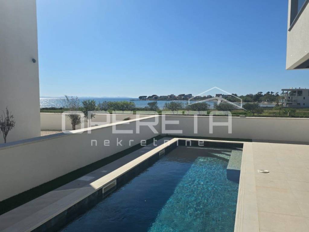 Prodaju se 2 prekrasna kuće, novogradnje,u mjestu Privlaka kod Zadra, udaljene svega 120 m od mora. Svaka kuća se nalazi na parceli od 400 m2 te ima NKP od 180 m2. Kuća se sastoji od prizemlja i prvog kata; prizemlje se sastoji od natkrivenog ulaza, garaže,hodnika,kuhinje,blagovaonice,dnevnog boravka,vešeraja,kupaonice i natkrivene terase. 1.Kat se sastoji od hodnika, 4 spavaće sobe, 4 kupaonice te natkrivene terase. U kompletnoj kući će biti postavljena PVC stolarija, svaka soba će imati klimu, te kuća posjeduje saunu. Svaka kuća će imati vlastiti bazen. Pristup parceli je omogućen sa jugoistoka,spojen na prometnu površinu.Planirani završetak gradnje jest kolovoz 2024.