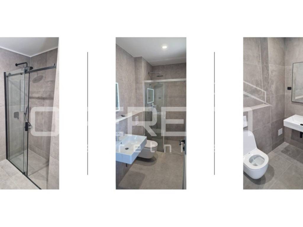 The property features aluminum joinery with insect screens and shutters, Inotherm entrance doors, and designer interior doors 220 cm high, enhancing the modern and refined character of the interior. Terraces and loggias are finished with high-quality materials for durability and aesthetics.