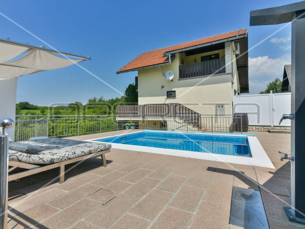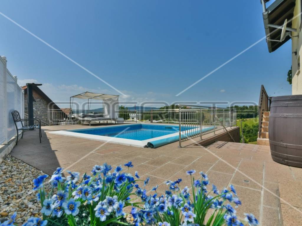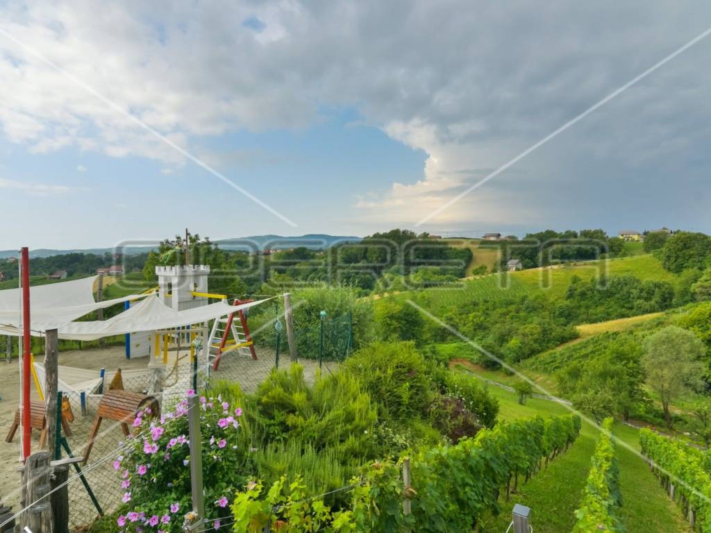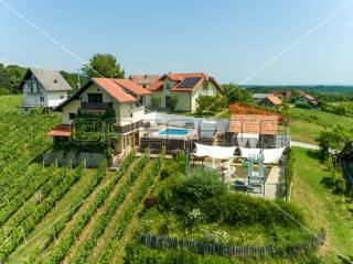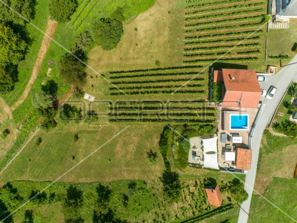 Prodaje se kuća, "Vila Vino", u mjestu Grandić Breg u okolici Ozlja, koje je izuzetno vinogradarsko područje. Kuća, zajedno sa pomoćnim objektima te plodnim i prekrasnim vinogradom, prostire se na 3000 m2 zemljišta. Kuća, NKP 125 m2, sastoji se od prizemlja i jednog kata; prizemlje se sastoji od kuhinje sa blagovaonicom, dnevnim boravkom iz kojeg se pruža izlaz u garažu i spremište, te kupaonice sa WC-om. Polukružnim stepenicama ide se na prvi kat koji se sastoji od 2 spavaće sobe,od kojih svaka ima izlaz na lođu sa kojih se pruža prekrasan pogled na vinograd i panoramu, obzirom na nadmorsku visinu mjesta od 210m te također kupaonice sa WC-om. Sve prostorije su nanovo i vrhunski opremljene. Ispred same kuće se nalazi novouređen bazen ispod kojeg se nalazi postrojenje za održavanje istog te jedna pomoćna prostorija. Stepenicama se sa bazena spušta prema staroj, ali renoviranoj kamenoj kućici koja ima funkciju spremišta te ispred koje se nalazi veliko pješčano igralište za djecu i terasa, pogodna za uživanje. Drugim stepenicama spušta se na nižu etažu na kojoj se nalazi vinski podrum te kotlovnica, ispred kojih se nalazi terasa sa kamenom pečenjarom, u hladu od vinove loze. Sa te terase spušta se u bogati vinograd. Ispred kuće je dvorište koje ima 2 parkirna mjesta, te garaža sa automatskim vratima. Kompletno imanje je ograđeno visokom bijelom ogradom radi pružanja potpune privatnosti. Kuća je kategorizirana kao kuća za iznajmljivanje te kao takva može nastaviti služiti sa već uhodanim poslom. Kuća se nalazi na izuzetno mirnoj lokaciji sa svega 2 susjedne kuće, udaljena svega 45 minuta vožnje od grada Zagreba, te 10 minuta vožnje od grada Ozlja,u kojem su dostupni svi urbani sadržaji koje pruža. Cijena se odnosi na *nenamještenu* kuću, dok opcija kupnje i inventara također postoji.