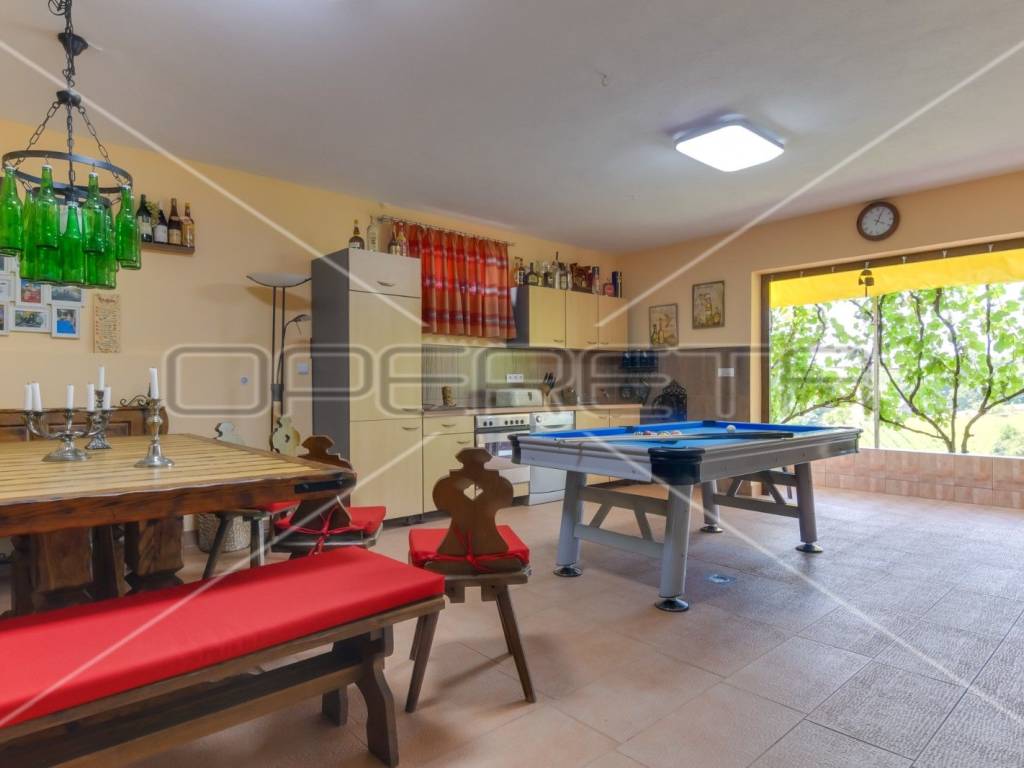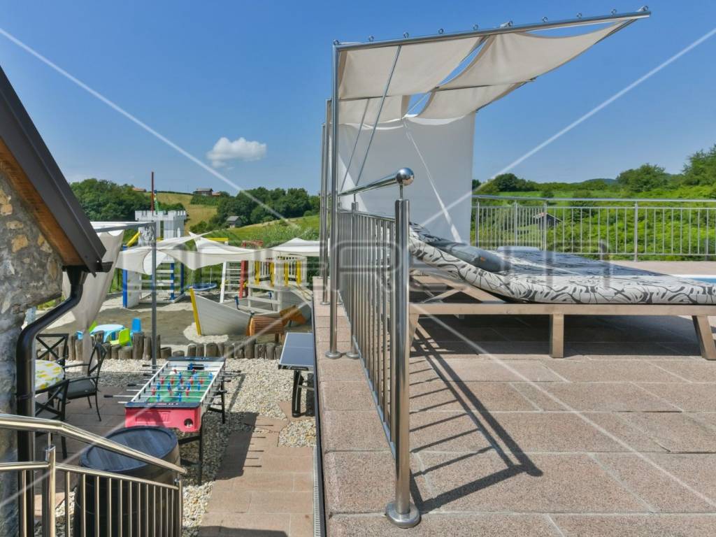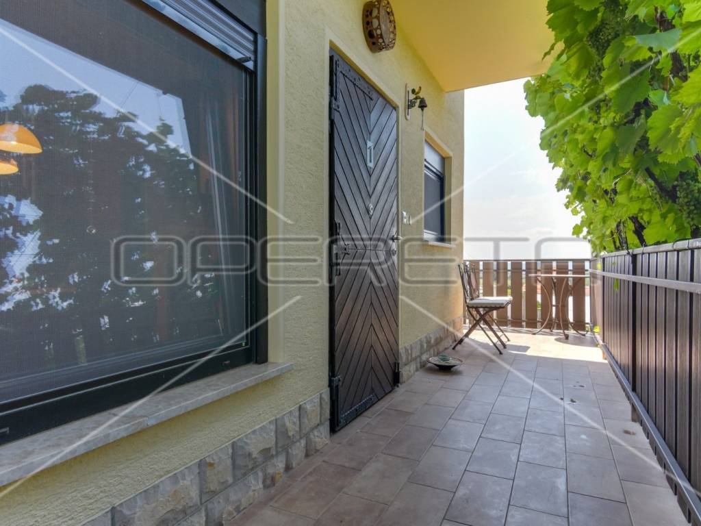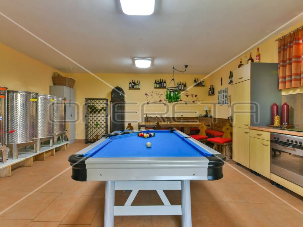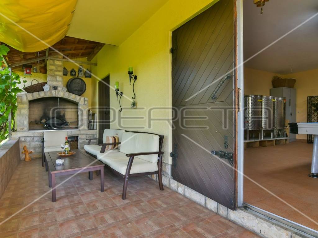 Prodaje se kuća, "Vila Vino", u mjestu Grandić Breg u okolici Ozlja, koje je izuzetno vinogradarsko područje. Kuća, zajedno sa pomoćnim objektima te plodnim i prekrasnim vinogradom, prostire se na 3000 m2 zemljišta. Kuća, NKP 125 m2, sastoji se od prizemlja i jednog kata; prizemlje se sastoji od kuhinje sa blagovaonicom, dnevnim boravkom iz kojeg se pruža izlaz u garažu i spremište, te kupaonice sa WC-om. Polukružnim stepenicama ide se na prvi kat koji se sastoji od 2 spavaće sobe,od kojih svaka ima izlaz na lođu sa kojih se pruža prekrasan pogled na vinograd i panoramu, obzirom na nadmorsku visinu mjesta od 210m te također kupaonice sa WC-om. Sve prostorije su nanovo i vrhunski opremljene. Ispred same kuće se nalazi novouređen bazen ispod kojeg se nalazi postrojenje za održavanje istog te jedna pomoćna prostorija. Stepenicama se sa bazena spušta prema staroj, ali renoviranoj kamenoj kućici koja ima funkciju spremišta te ispred koje se nalazi veliko pješčano igralište za djecu i terasa, pogodna za uživanje. Drugim stepenicama spušta se na nižu etažu na kojoj se nalazi vinski podrum te kotlovnica, ispred kojih se nalazi terasa sa kamenom pečenjarom, u hladu od vinove loze. Sa te terase spušta se u bogati vinograd. Ispred kuće je dvorište koje ima 2 parkirna mjesta, te garaža sa automatskim vratima. Kompletno imanje je ograđeno visokom bijelom ogradom radi pružanja potpune privatnosti. Kuća je kategorizirana kao kuća za iznajmljivanje te kao takva može nastaviti služiti sa već uhodanim poslom. Kuća se nalazi na izuzetno mirnoj lokaciji sa svega 2 susjedne kuće, udaljena svega 45 minuta vožnje od grada Zagreba, te 10 minuta vožnje od grada Ozlja,u kojem su dostupni svi urbani sadržaji koje pruža. Cijena se odnosi na *nenamještenu* kuću, dok opcija kupnje i inventara također postoji.