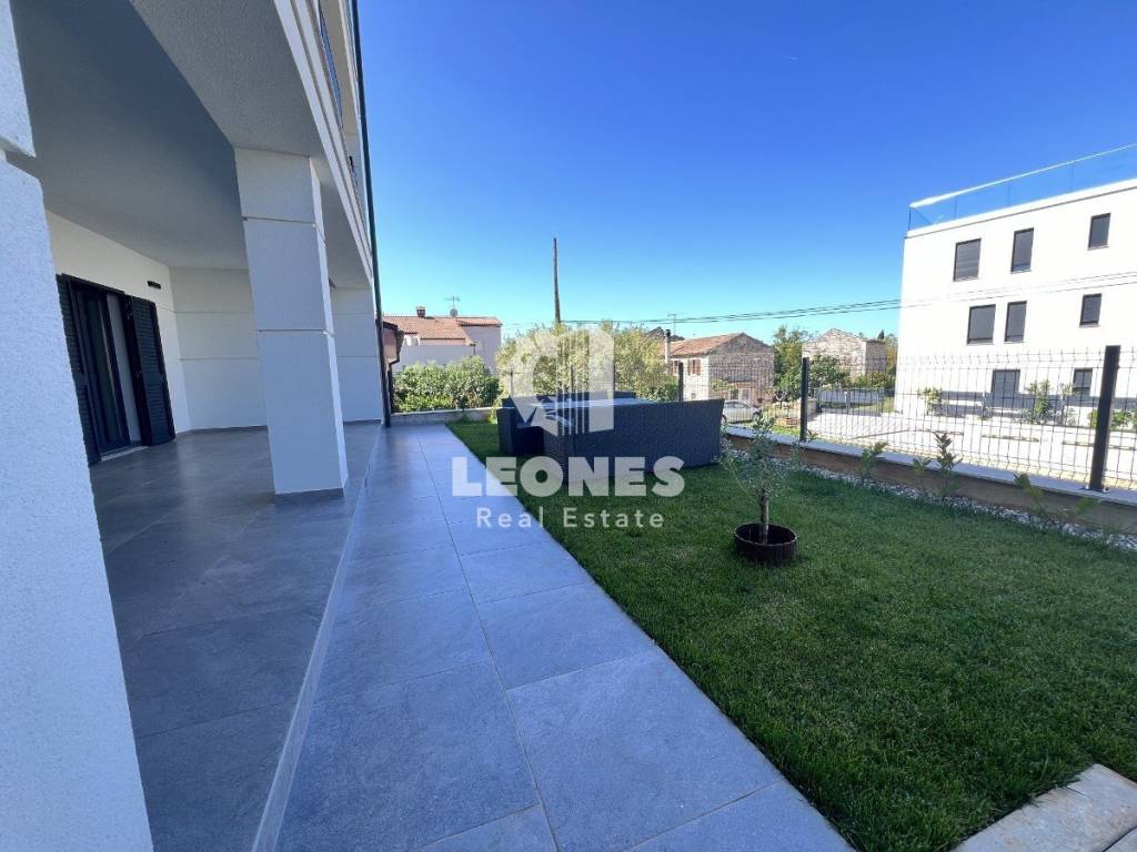 Furnished apartment in Novigradfor sale in a new building only 500m from the sea. The apartment in Novigrad has a separate entrance as well as 2 parking spaces next to the garden. It consists of a living area that includes a living room and a kitchen with a dining room, a hallway, two bedrooms and two large bathrooms. There are air conditioners in every room, and there is also the possibility of underfloor heating in the entire apartment for an extra charge.