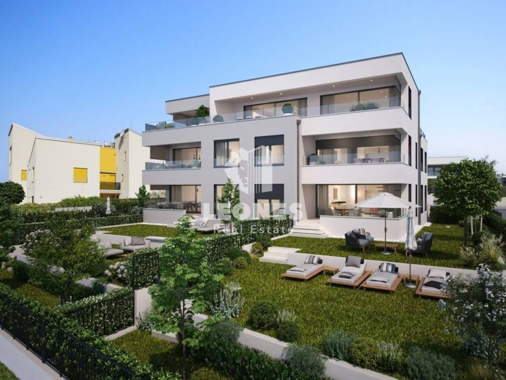 Comfortable apartment with a garden and sea view in a quality new building in Novigrad