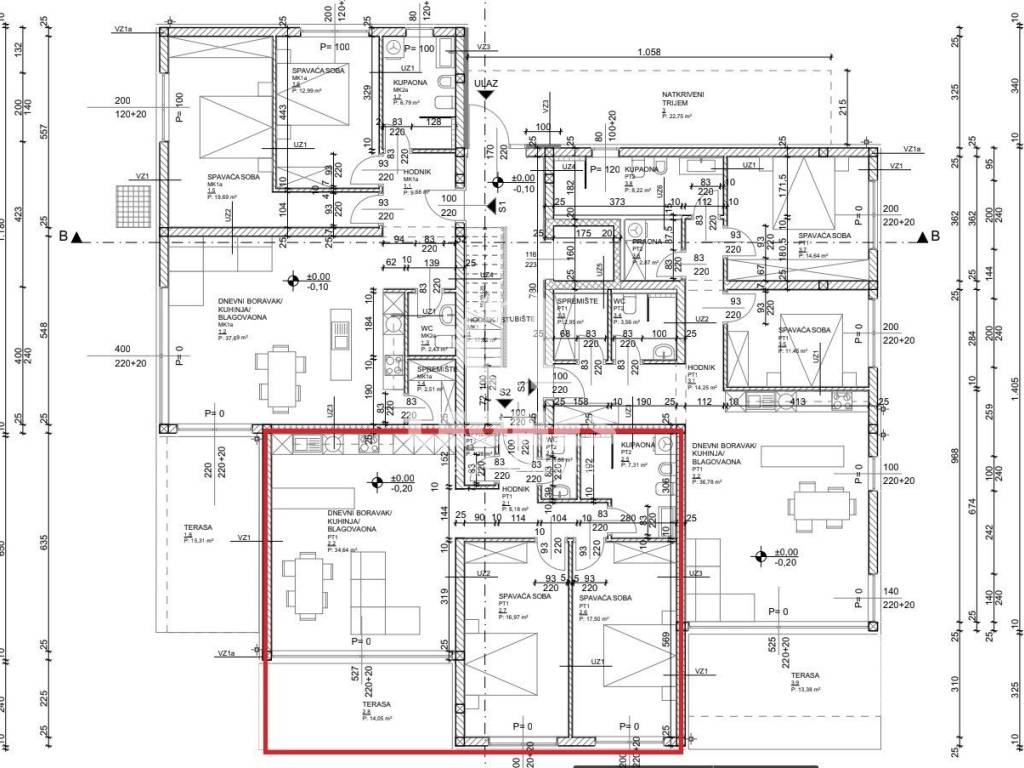 The living room with kitchen and dining room is designed in an open space style. From the living room there is access to a covered terrace of 14 m2, from which you can enter a beautifully landscaped garden of about 200 m2. It should be noted that each apartment has a storage room in the basement, and this quality building will have an elevator that extends from the basement to the 2nd floor.