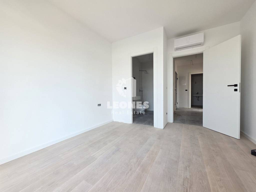 The residential building is entirely designed from reinforced concrete monolithic construction, interfloor panels. The partition walls inside the apartments are made of double-thick plasterboard linings with additional thermal and sound insulation. The facade lining is in the ETICS system with 10 cm thick thermal insulation. The external facade openings are closed with high-quality multi-chamber PVC anthracite joinery of the latest generation. The bedrooms have electric roller shutters. All apartments are equipped with high-quality multi-split heating and cooling systems whose operating characteristics ensure maximum comfort and economy.