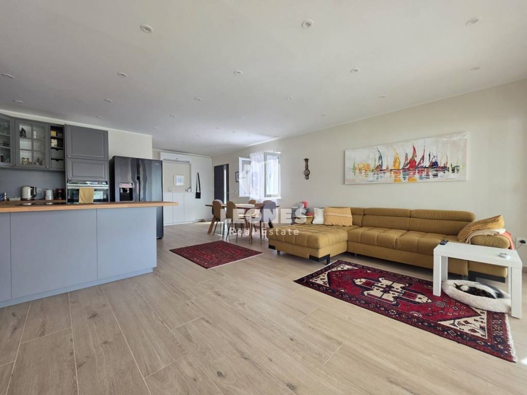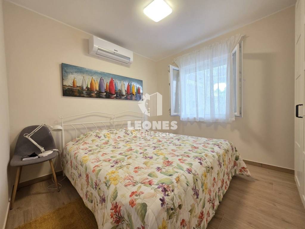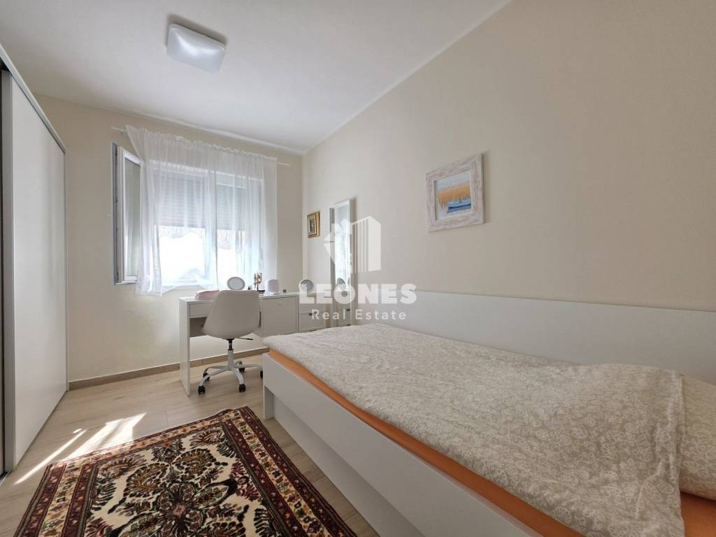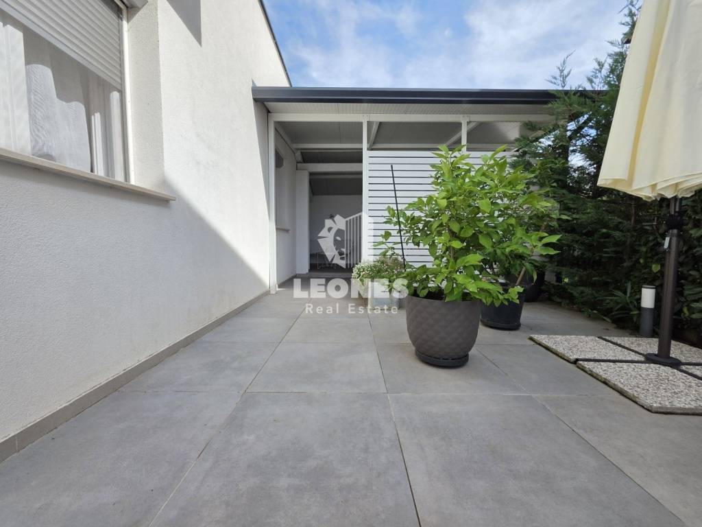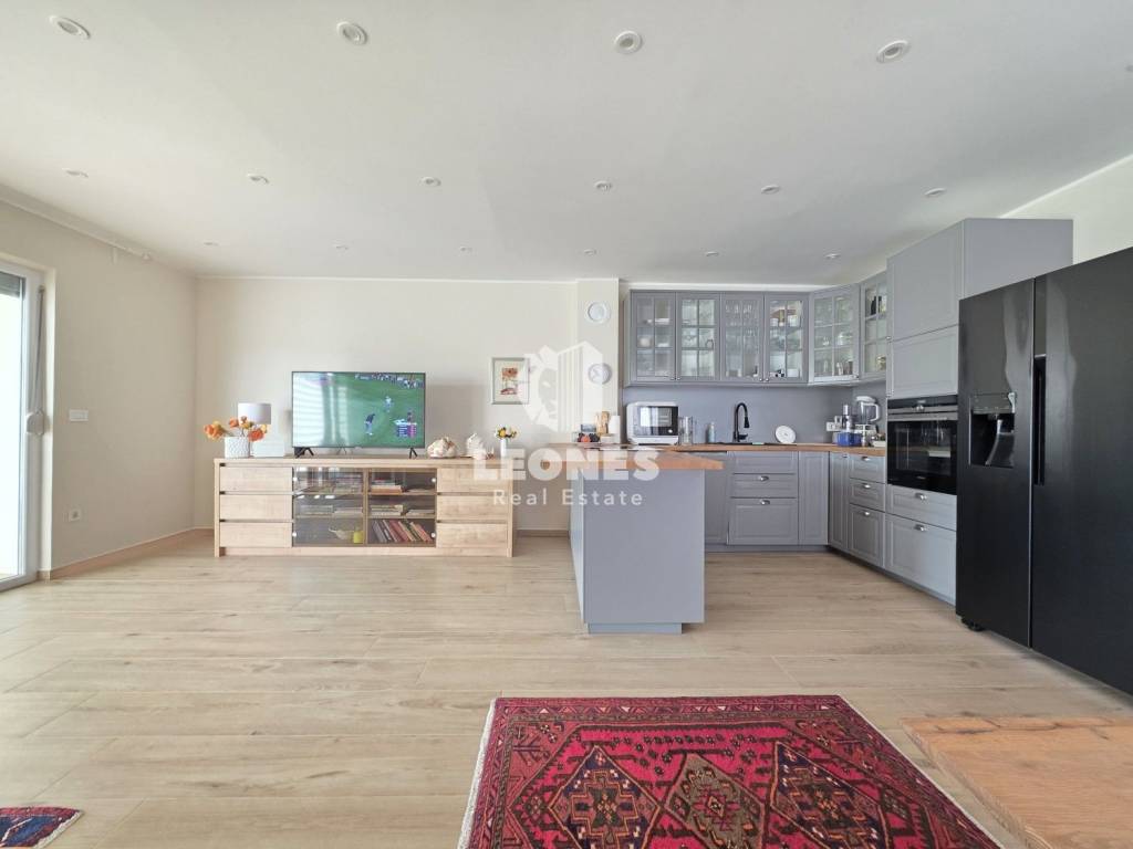 A new apartment with a garden in a quiet environment near Umag is for sale. The net usable area of the apartment is 100 m 2 (total NUA 138 m2) and consists of a living room and kitchen, 3 bedrooms, bathroom, toilet, enclosed terrace, 165 m2 garden, summer kitchen, storage room and two parking spaces. The terrace was subsequently enclosed and thus gained an additional room for living throughout the year.