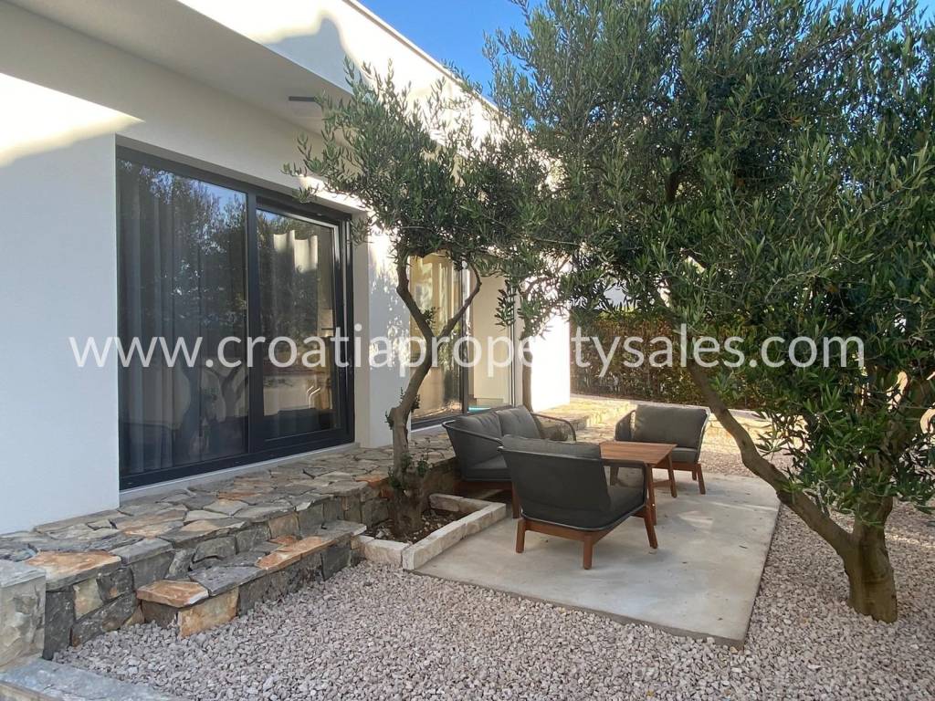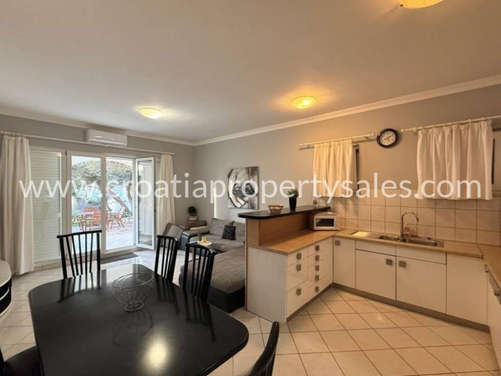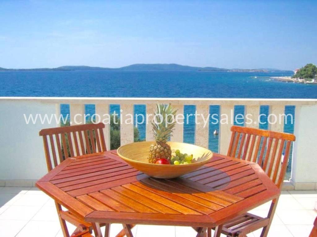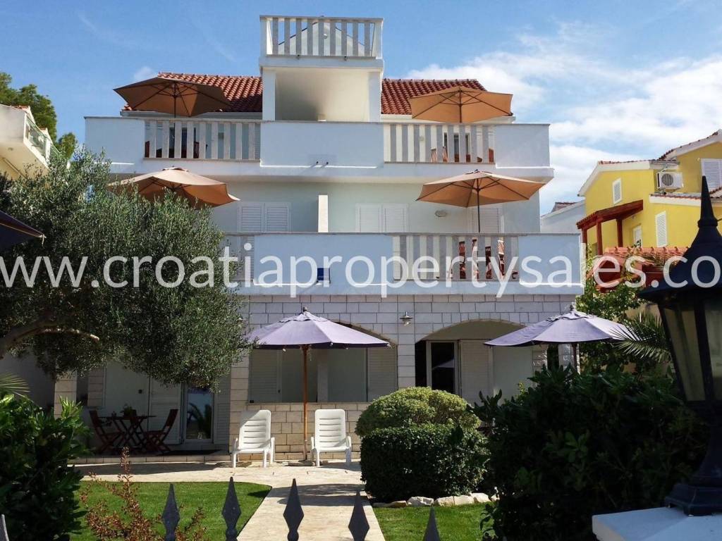 A wonderful apartment house in the first row in an upmarket village not far from Šibenik. Spread over 3 floors there are 7 apartments in total. The basement contains a one and two-bedroom apartment. On the ground floor there are two two-bedroom apartments, the first floor has two one-bedroom apartments and in the attic there is a one-bedroom apartment. All units have their own terraces with outdoor dining and views over the sea. There is a summer kitchen and space for socializing in a lovely large landscaped garden. Parking space for several cars. Given that it is a popular village this property has a high rental income if used for tourist purposes, as well as for a combination of personal use and rental, considering the layout. Split airport is 54 km away and Sibenik centre 18km away.