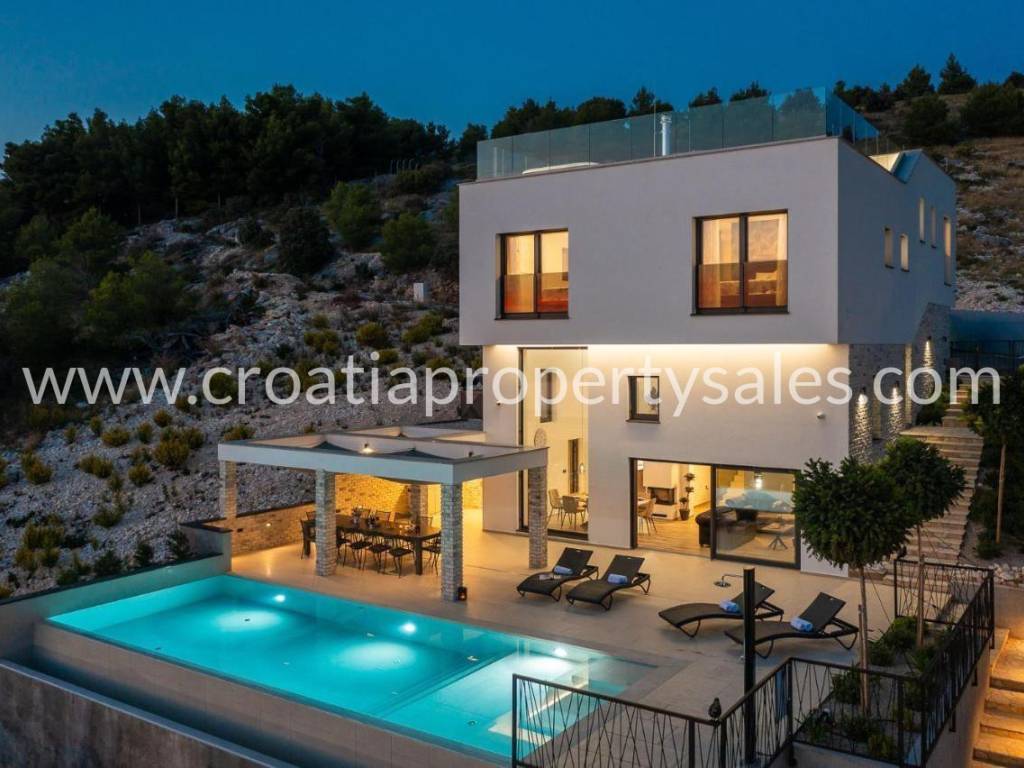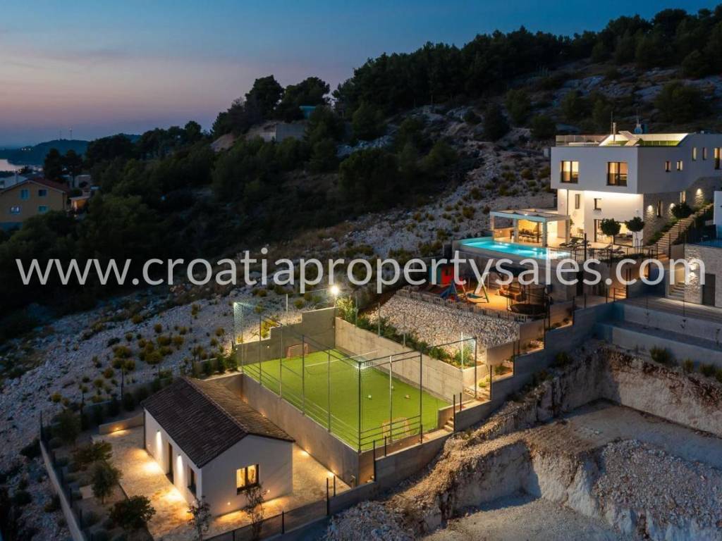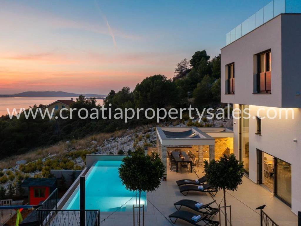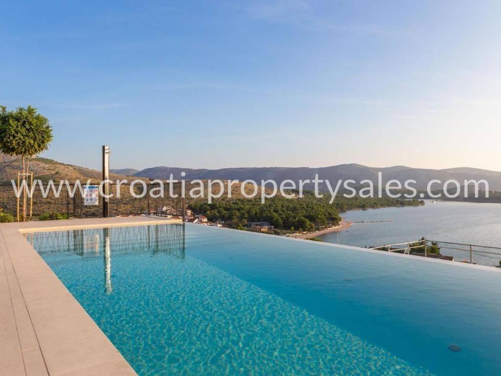 A luxuriously decorated villa near Šibenik with an infinity pool, tennis court and panoramic views over the archipelago.