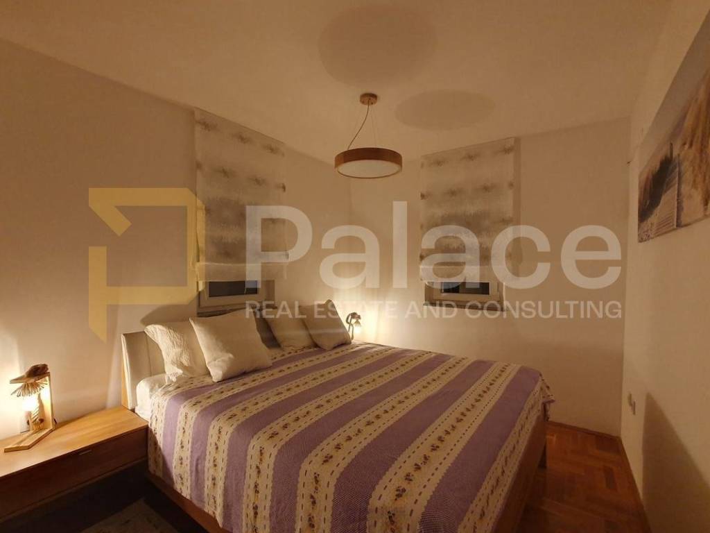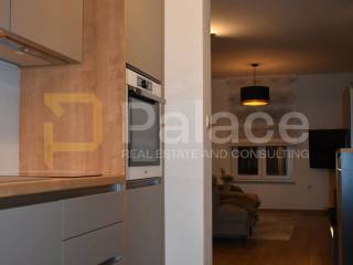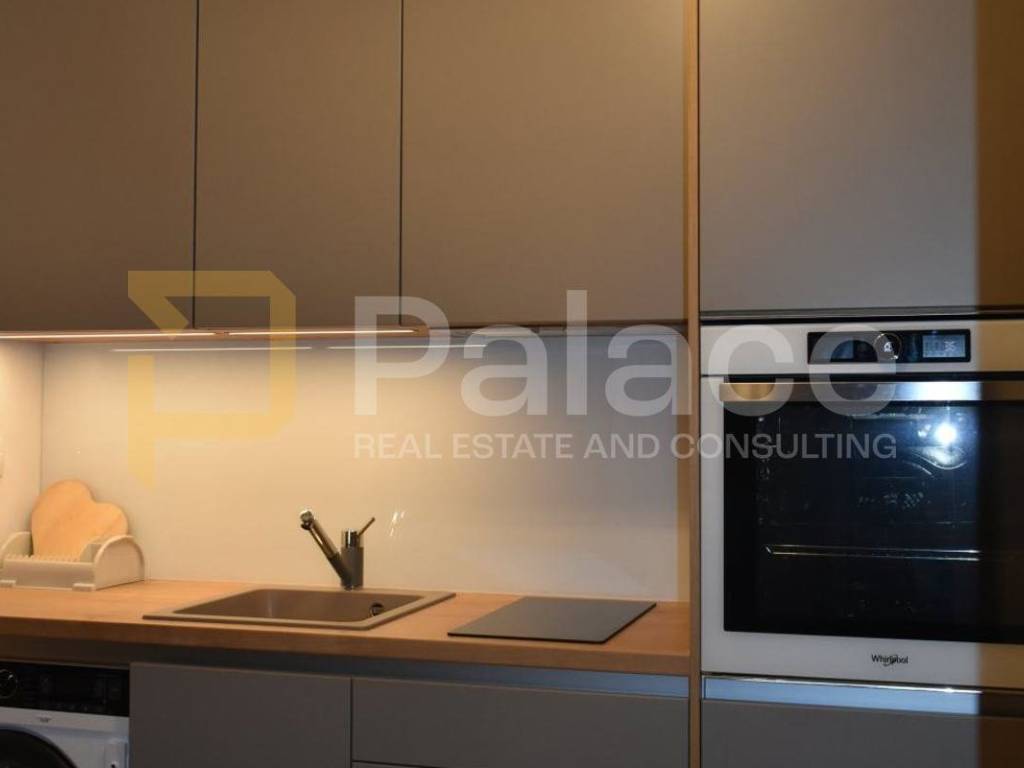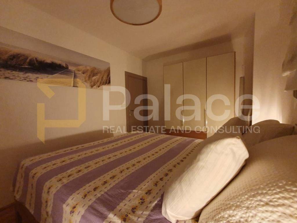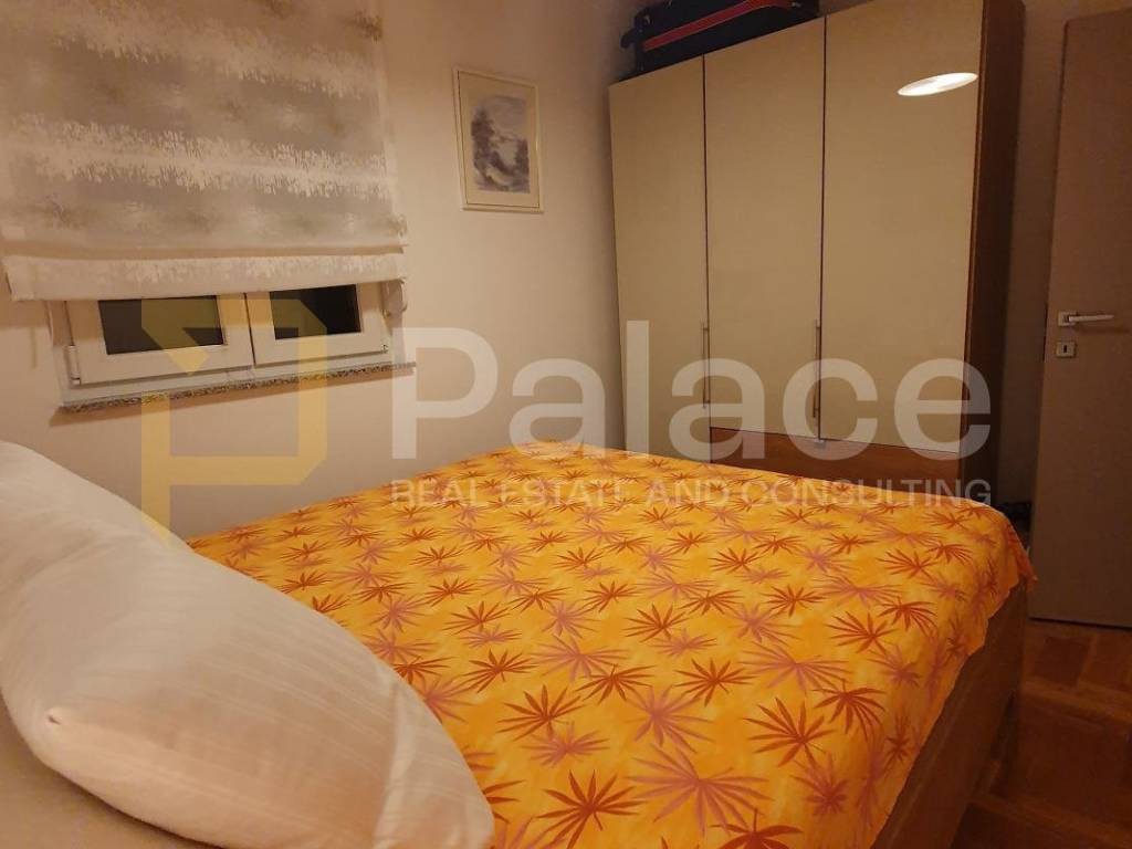 The apartment is carefully furnished with modern materials and fully equipped. Underfloor heating is installed in the living room, kitchen, bathroom, and entrance, while the bedrooms are covered with high-quality lacquered parquet. The loggia is glazed with sliding panels, allowing for a pleasant stay even in the extended season, and offers a partial view of the sea and greenery. The loggia also has space for a mini bar or barbecue.