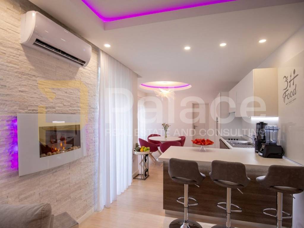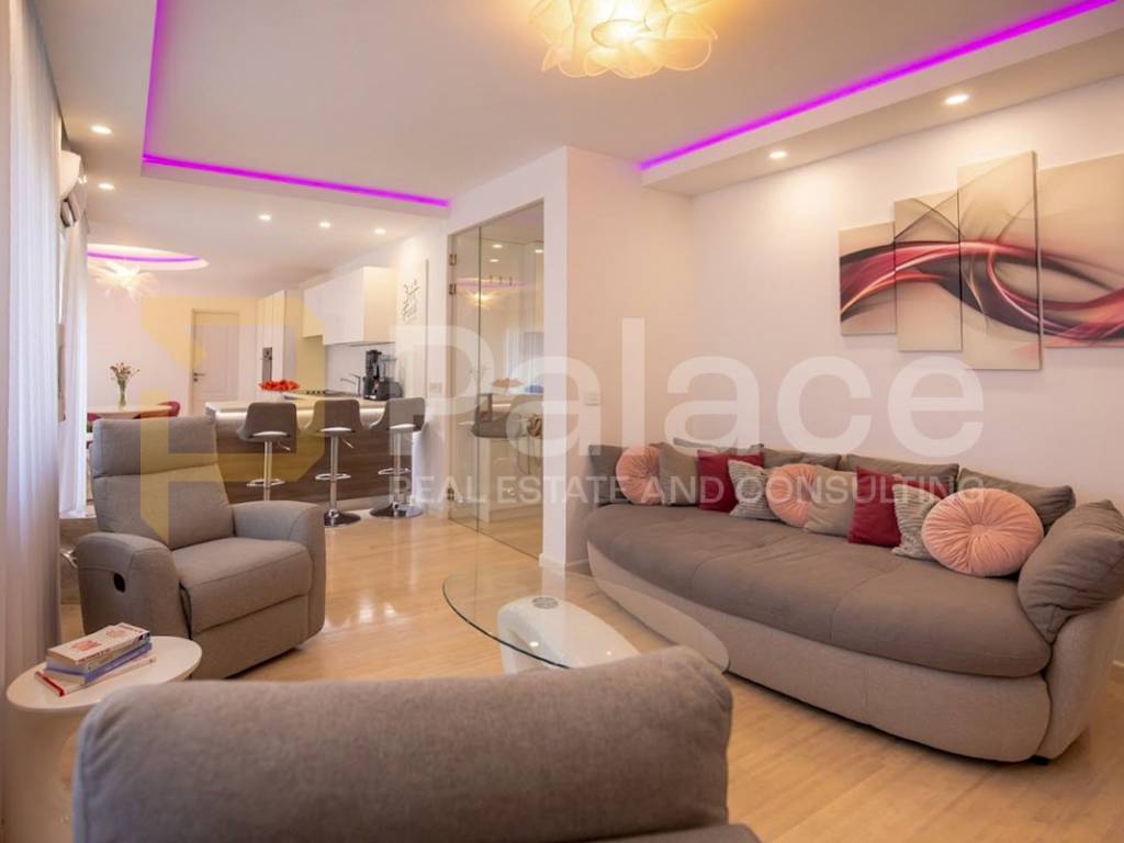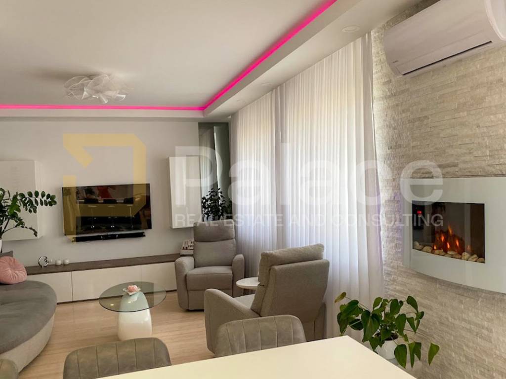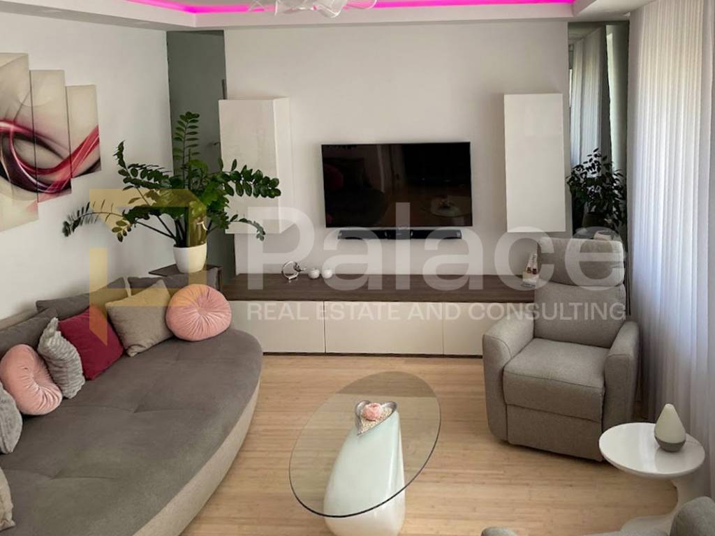 For sale is a modern, fully furnished apartment located on the 1st floor of an urban villa with two floors. The apartment includes a private garage, external parking space, and a spacious basement, with the specialty of having its own wellness area offering a jacuzzi, sauna, and relaxation space. The combination of modern design and practical amenities makes this apartment ideal for a comfortable and exclusive lifestyle.