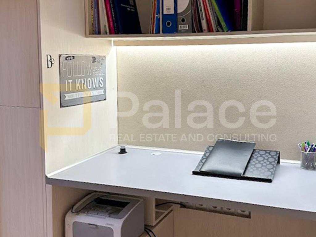 The kitchen is fully equipped (built-in dishwasher, oven, fridge, water filter), and all furniture in the apartment is custom-made.