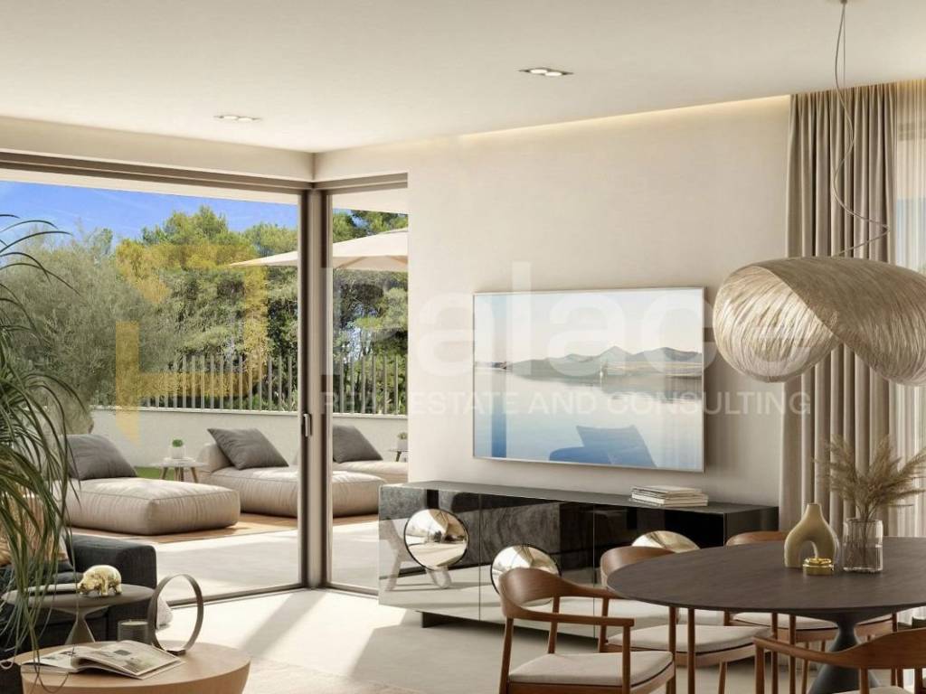 A luxurious apartment located in a quiet and exclusive environment near Rovinj is being sold, in a modernly designed building with a total of four residential units. This spacious ground-floor apartment stands out with high-quality construction, contemporary design, and luxurious details that create a perfect balance between comfort, functionality, and style.