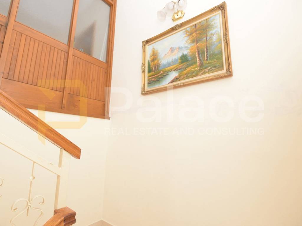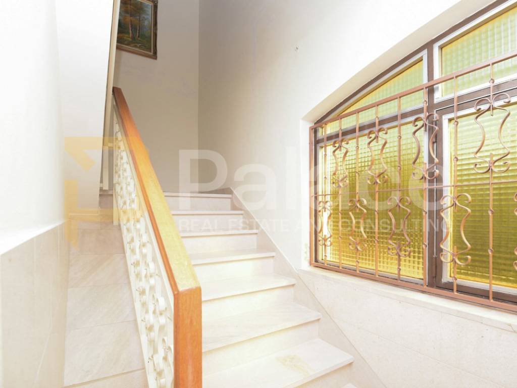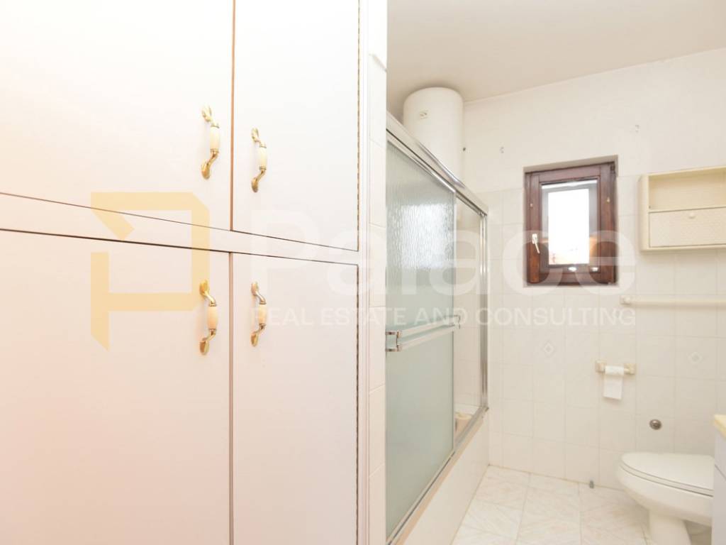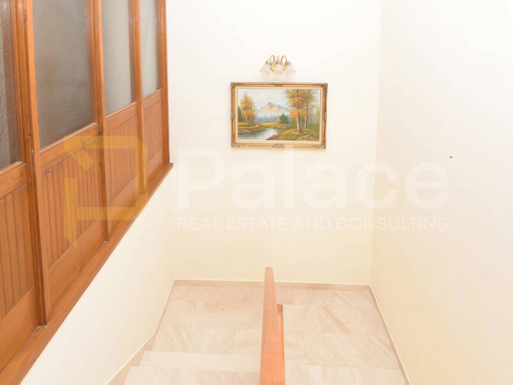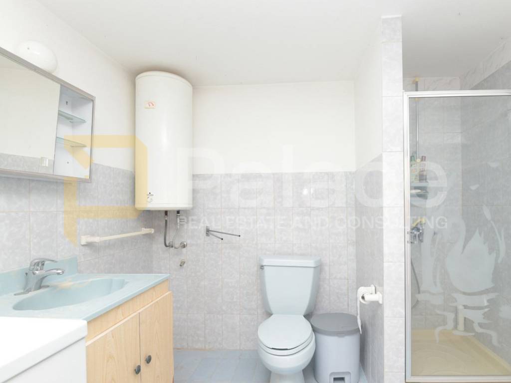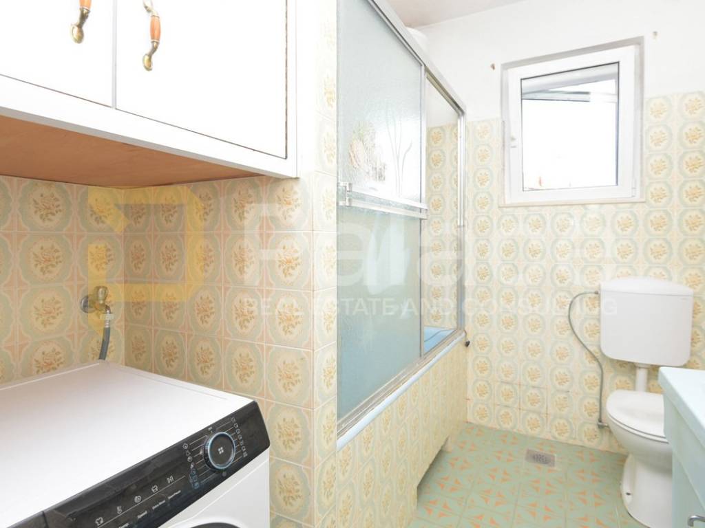 First floor apartment is accessed through an enclosed internal staircase and consists of a spacious living room with access to a 19 m2 terrace, kitchen, dining room, two bedrooms, and a bathroom. The terrace offers a beautiful open sea view.