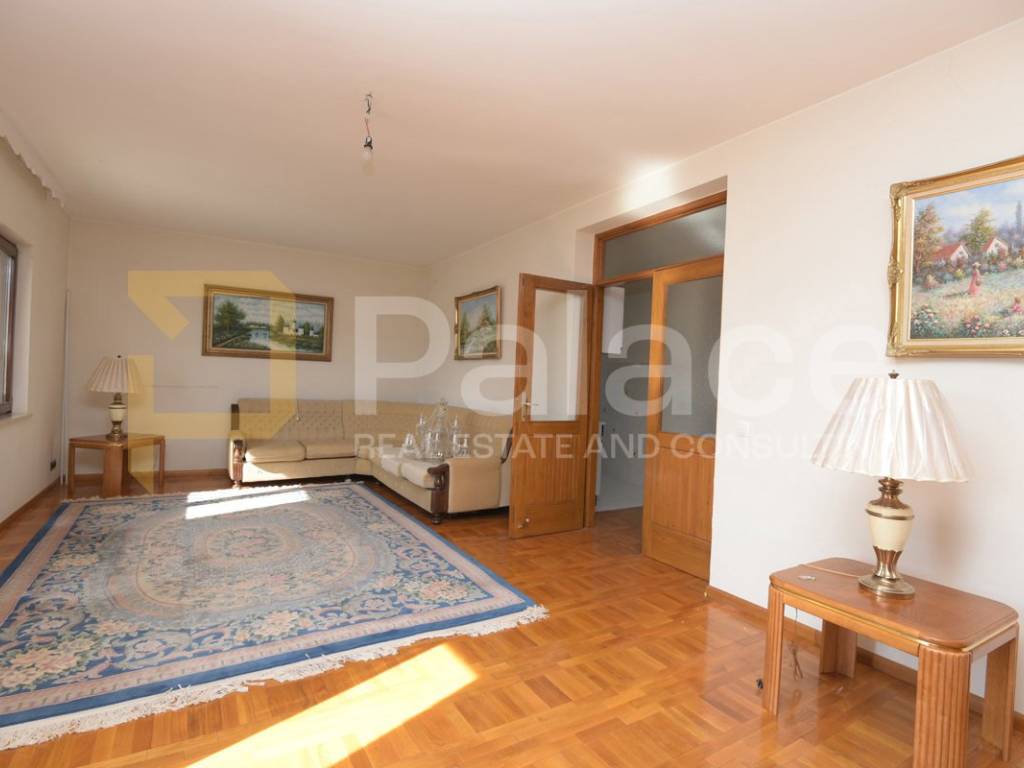 Ground floor apartment consists of two bedrooms, a bathroom, kitchen, dining room, living room, and storage room. New PVC windows have been installed, with access through the garage or a separate entrance via external closed stairs.