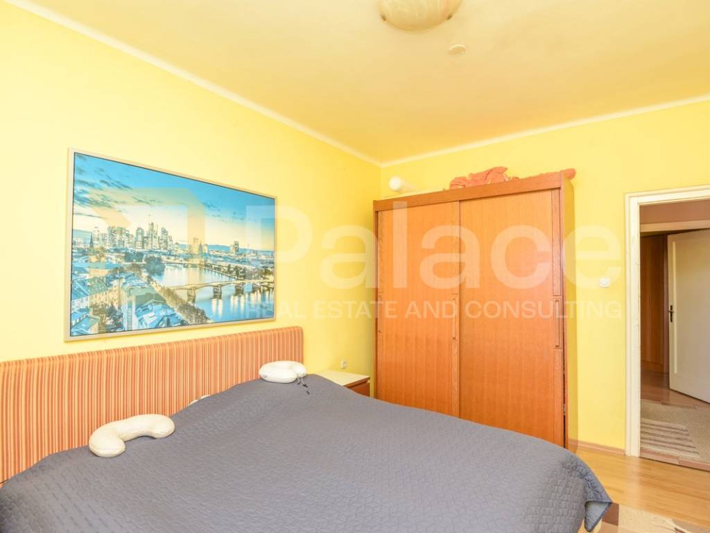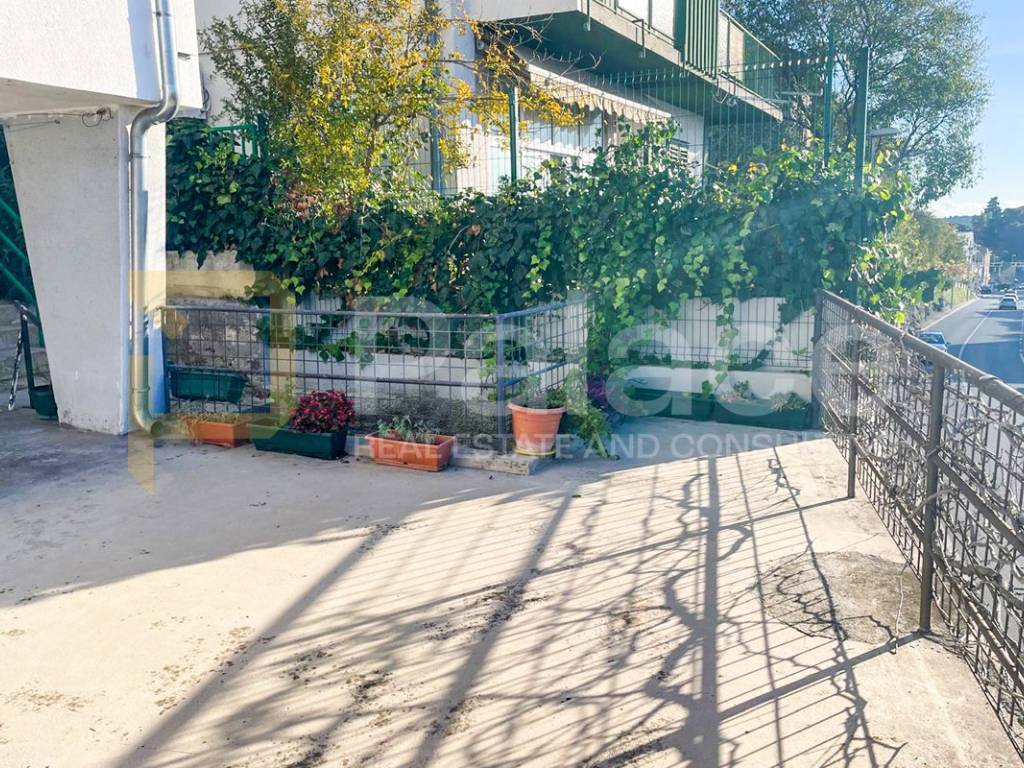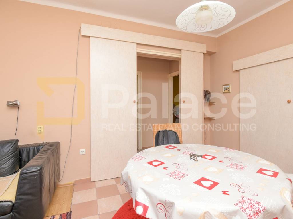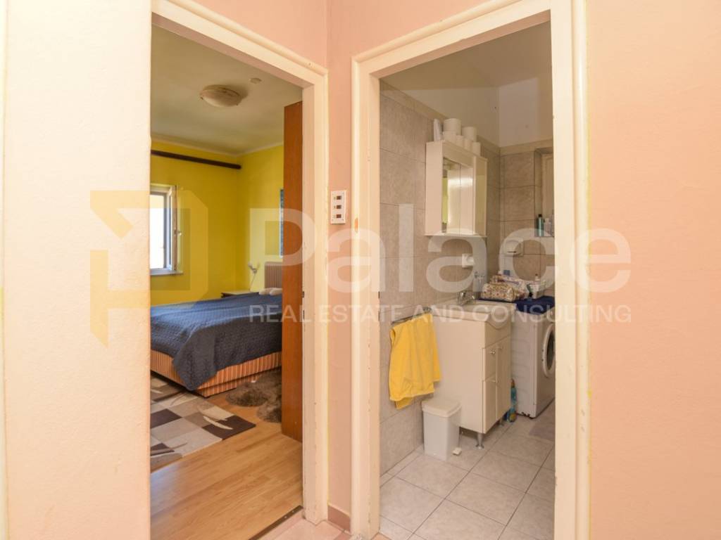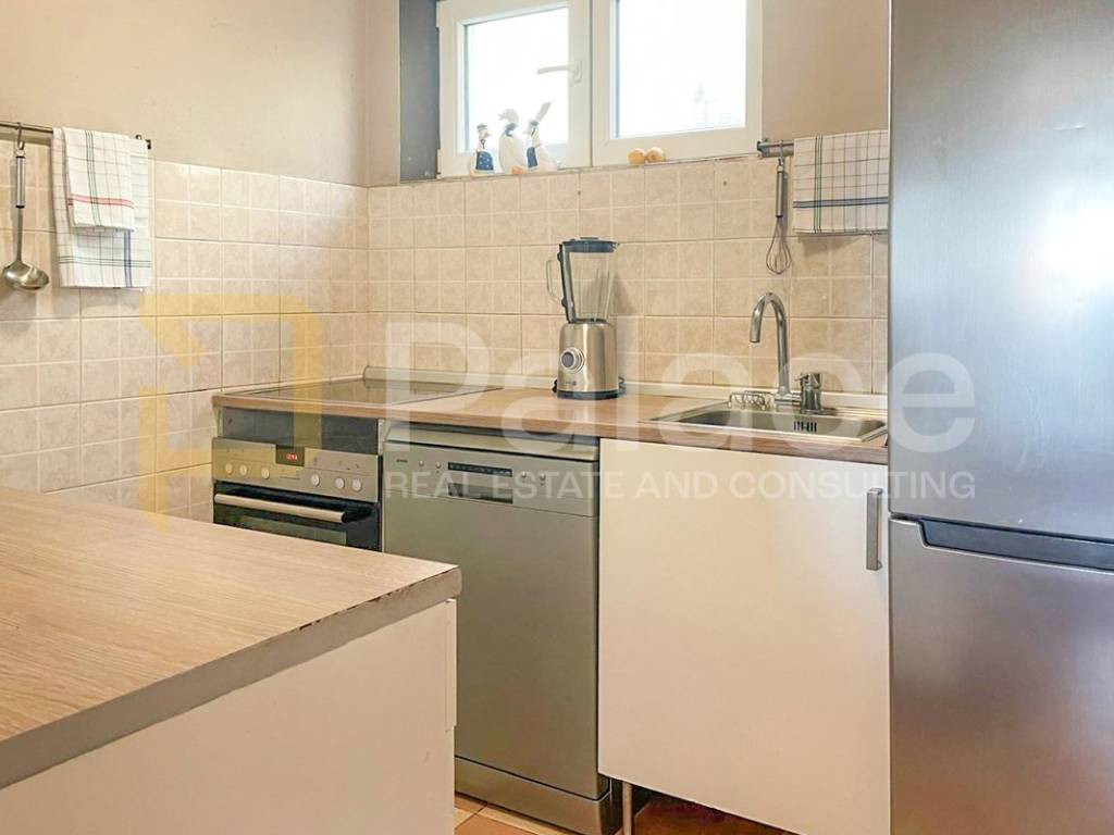 The house was built in the 1960s, has an occupancy permit, and consists of an entrance garage with roller doors from the street. Stairs lead to the basement where there is a large terrace with a small garden area and 3 rooms (summer kitchen, storage room, and toilet, which with a bit of creativity can be turned into a nice outdoor space). On the ground floor, there is a furnished and move-in ready apartment, renovated about 10 years ago, consisting of an entrance hall, kitchen, dining room with living room, hallway, 2 bedrooms, and a bathroom. Above is an attic that can be raised by 60 cm according to the Regulations for buildings constructed before 1968.