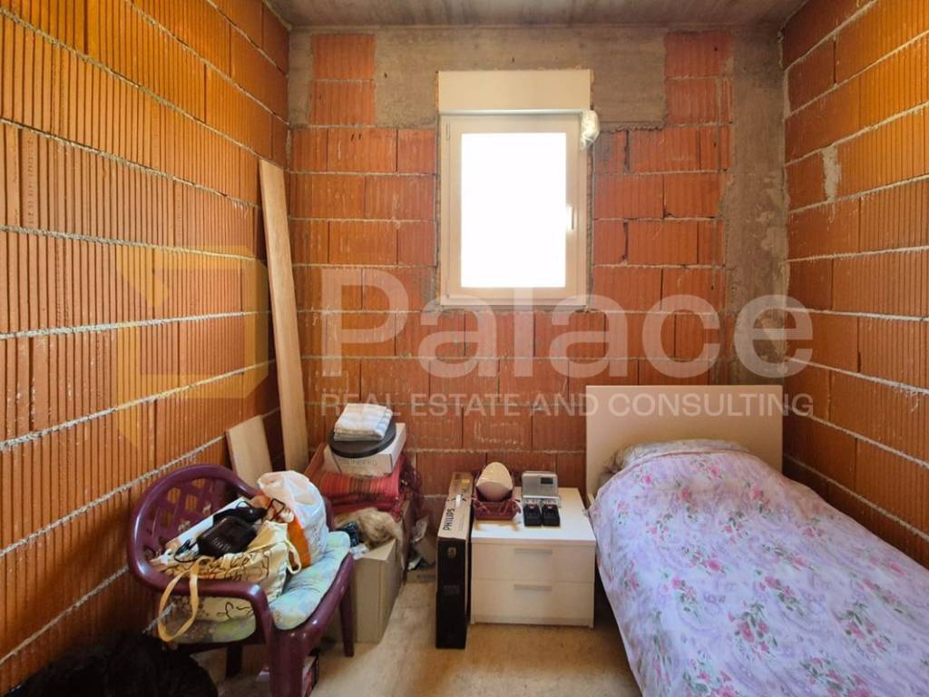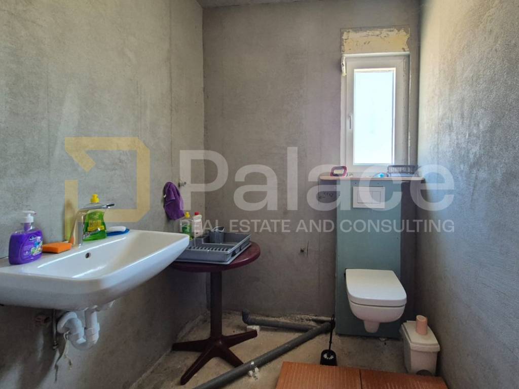Construction started in 2024 based on a valid building permit. The house consists of two separate residential units. The ground floor includes an apartment with two bedrooms, a bathroom, and an open space with a living room, kitchen, and dining area. It has PVC windows with built-in mosquito nets and shutters, and a large terrace in front of the apartment as per the project plan. Internal separate stairs lead to the upper floor where a one-bedroom apartment with its own terrace is located.