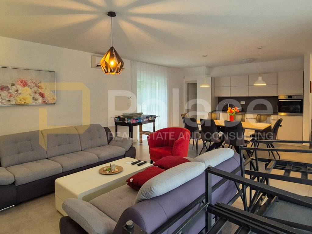 For sale is a beautiful detached house with a surface area of 150 m situated on a plot of 487 m. This house with a pool offers everything you need for a comfortable and quality life, providing privacy and tranquility. It is ideal for a family or as a vacation investment as it is located in Šišan, a desirable tourist location.