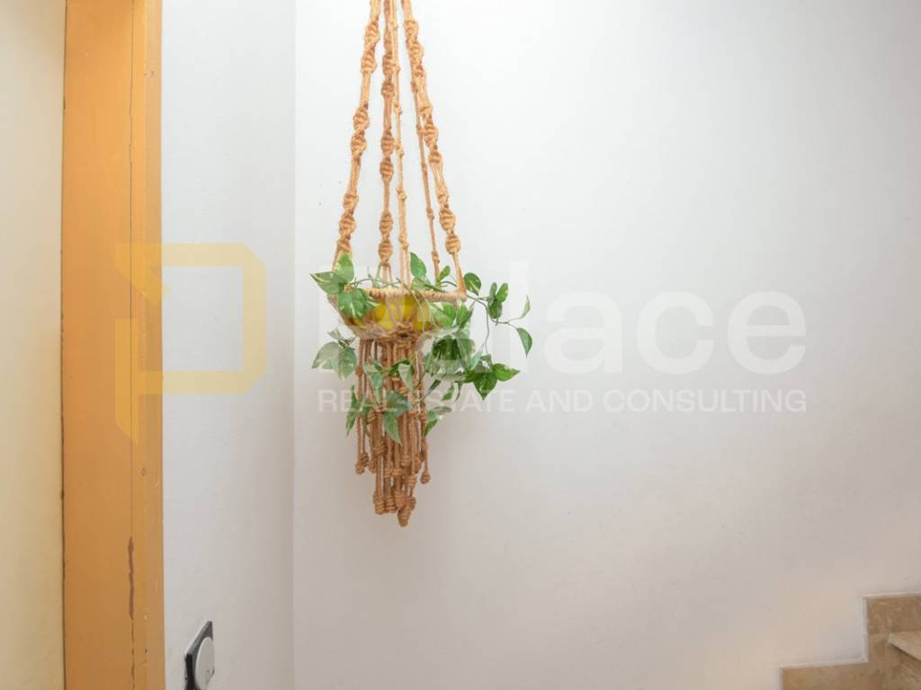 The house covers a total of 219 m2 and 120 m2 of garden area. On the ground floor, there is a one-bedroom apartment of 66 m2. It consists of a central hallway leading to a kitchen with dining area and living room, bathroom, and bedroom.