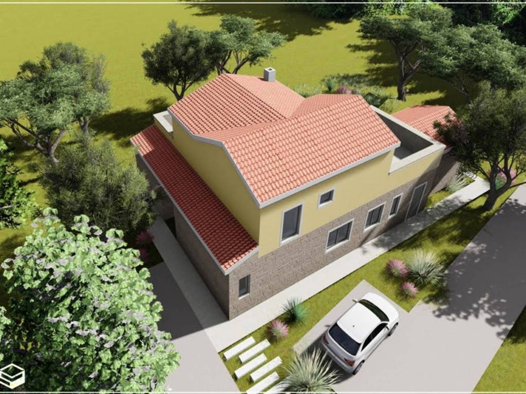 Naša agencija nudi zemljište s već izrađenim projektom i građevinskom dozvolom za luksuznu kuću na kat, koja će vas oduševiti svojim dizajnom i funkcionalnošću. Prizemlje kuće prostire se na impresivnih 112m2, nudeći dovoljno prostora za udoban i raskošan životni stil. Pri ulasku u kuću, dočekuje vas prostrani hodnik koji vodi u sve prostorije. Glavni prostor čini dnevni boravak s blagovaonicom i kuhinjom, koji su savršeno povezani i osvijetljeni prirodnim svjetlom. Iz kuhinje se izlazi u dvorište gdje se nalazi prekrasan bazen površine 25m2, idealan za osvježenje i relaksaciju u toplim ljetnim danima.