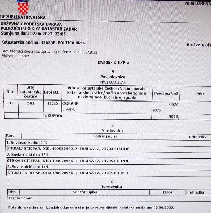 Za više informacija, dostavu dokumentacije, povjerljivih podataka, fotografija dronom užeg i šireg područja i razgled nekretnine, uz prethodno potpisan ugovor za suradnju, stojimo Vam na raspolaganju.