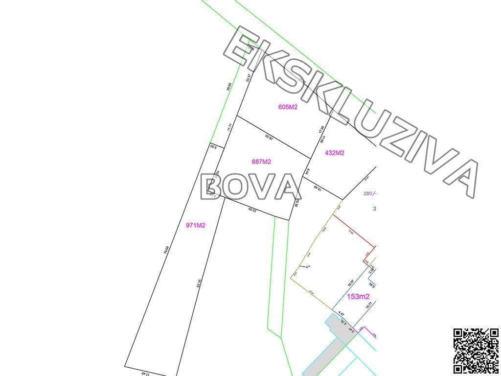 površine zemljišta po parcelaciji iznose 687m2, 971m2;