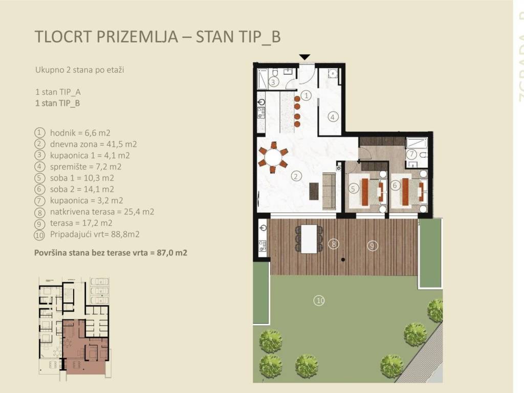 Experience the elegance and comfort of this beautifully designed ground floor apartment located in a luxury building. With a total area of 117.93 m2 and a garden of 88.80 m2, this apartment is a dream come true.