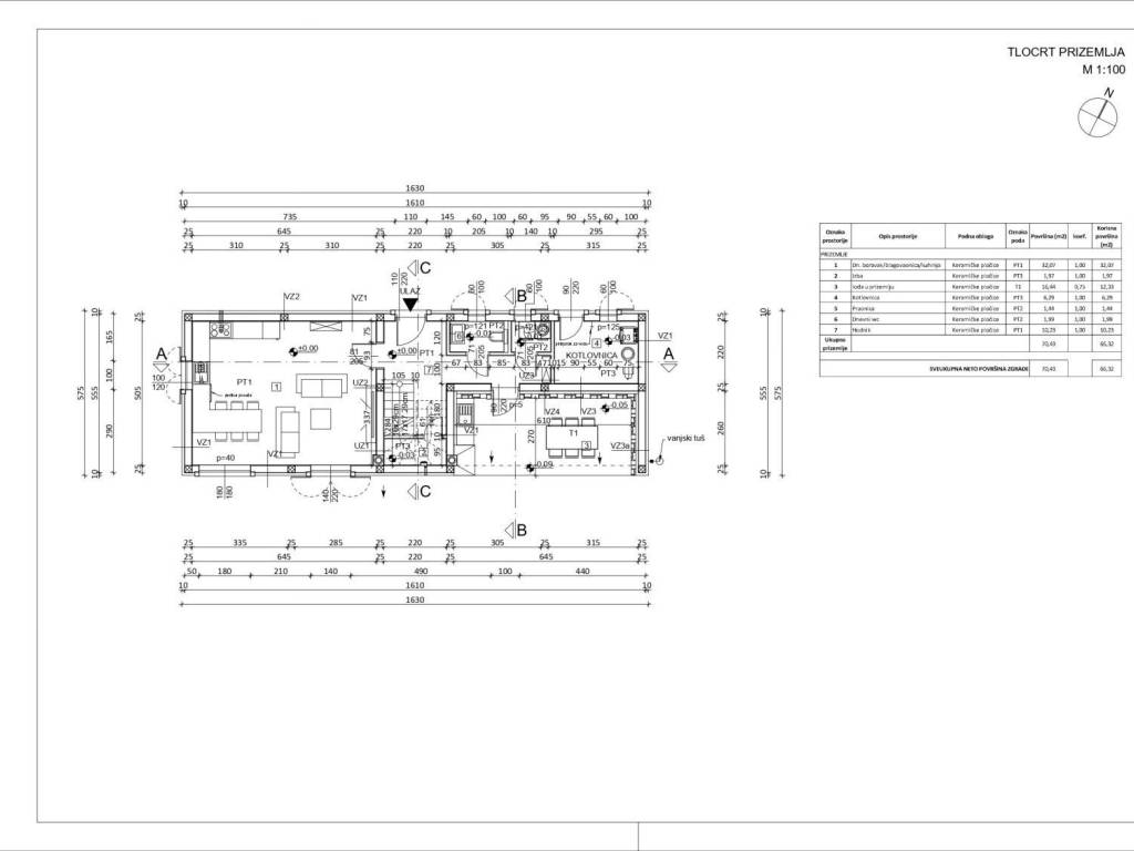 The house, with an area of 140m2, extends over two floors. On the ground floor there is a toilet, kitchen, dining room and living room with access to the 250m2 yard. There is potential for a swimming pool in the yard, while the technical rooms and storage room have a separate, external entrance.