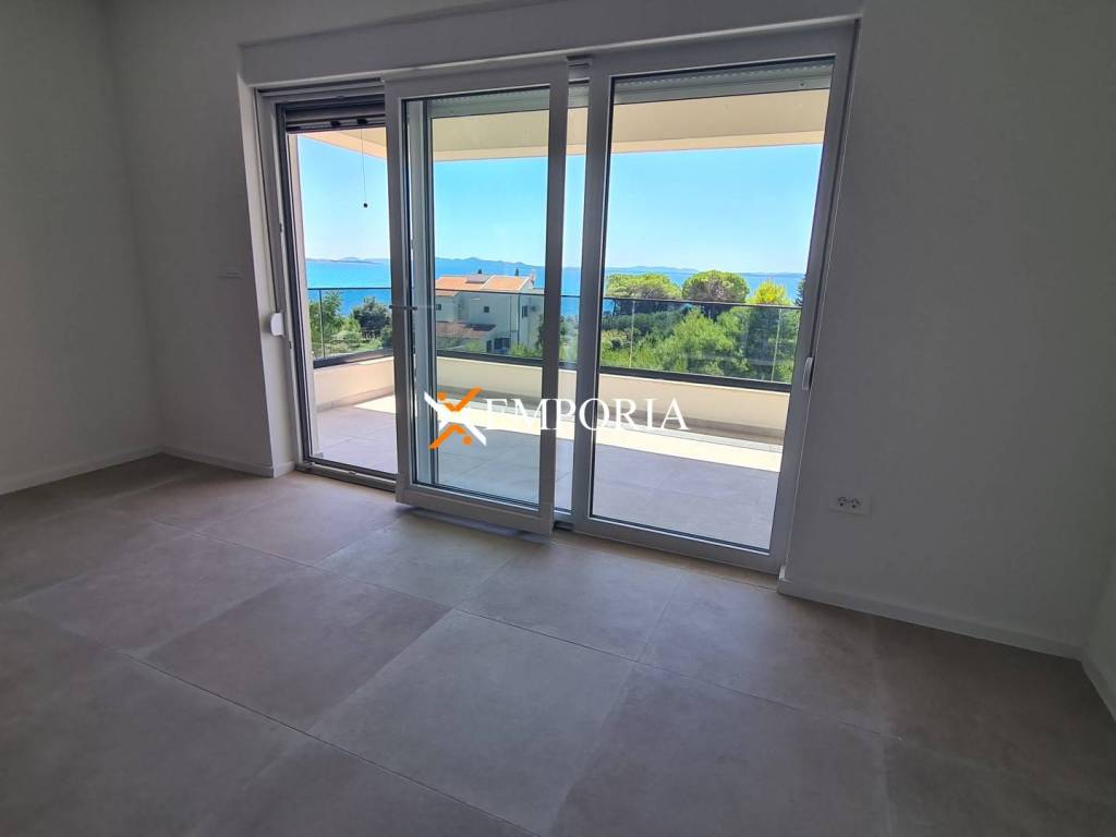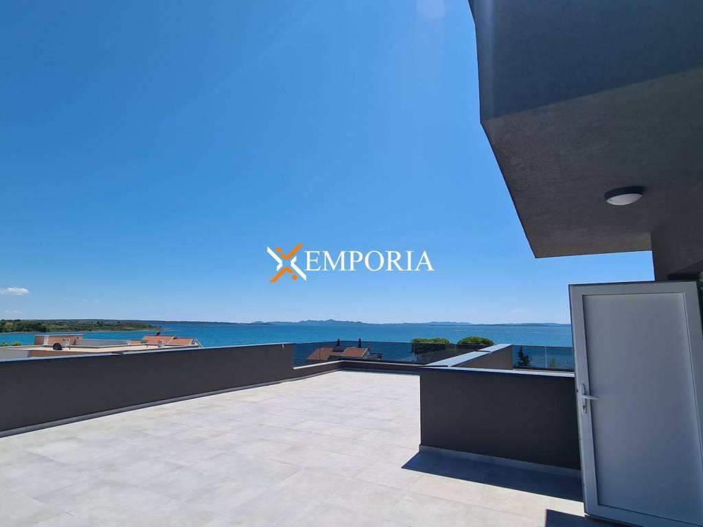 Beautiful new sea view apartment for sale in Privlaka. Distance from the sea is only 80 m. Direct access to the sea. The community pool in the courtyard of the building adds to the luxury of this property.