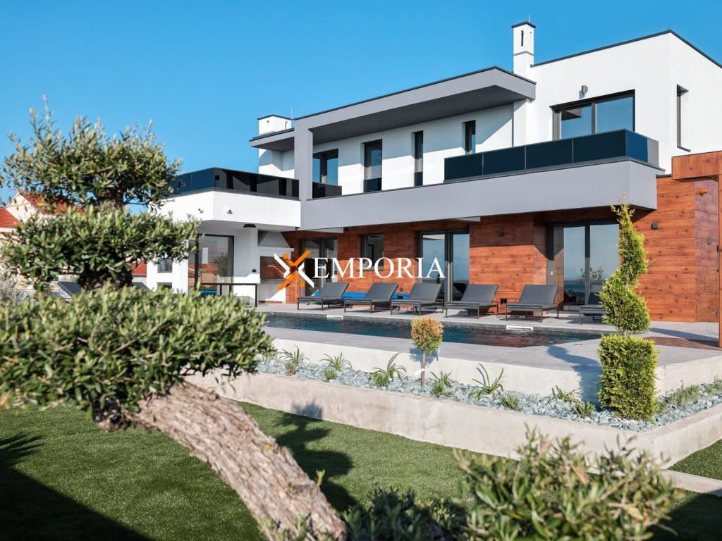 Villa with pool, 290m from the sea, sea view, furnished, Privlaka