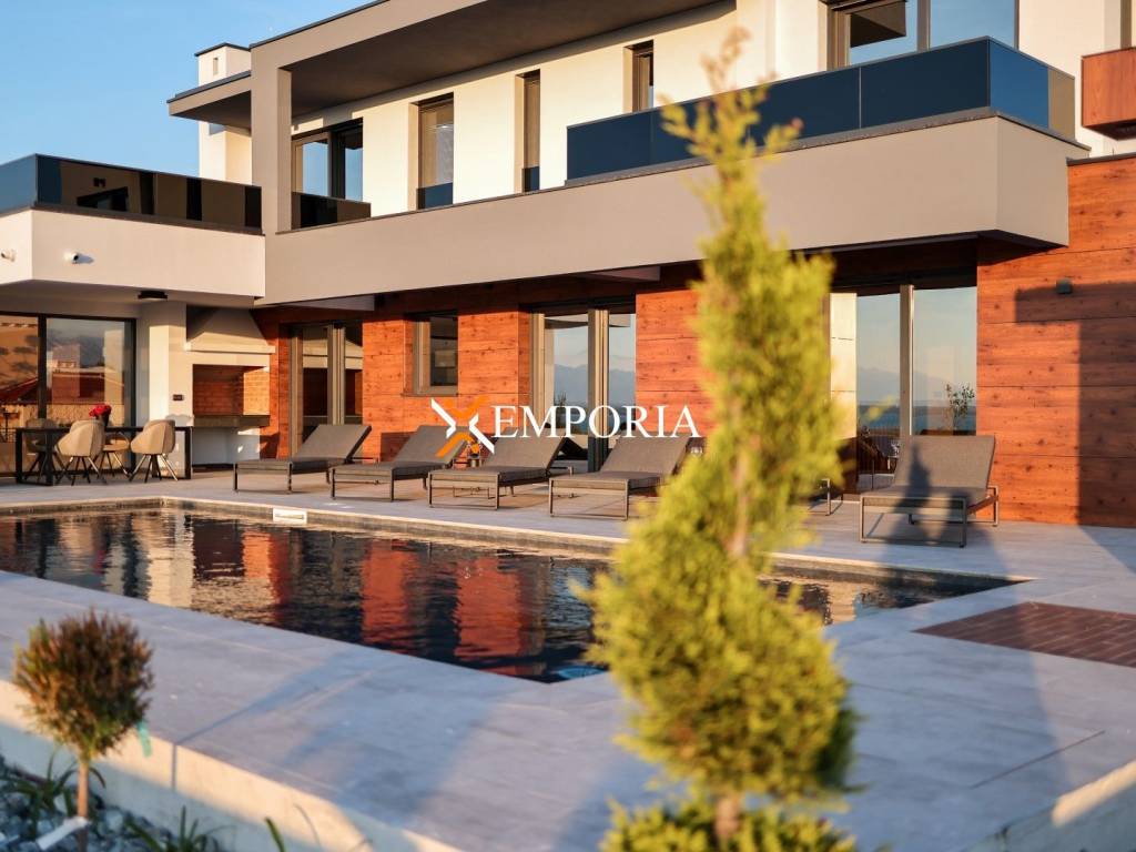 The area of the house is 310 m2. The plot on which it was built has 862 m2. There are 4 parking spaces in the yard. The swimming pool, which also includes a jacuzzi, measures 10 x 4 m.