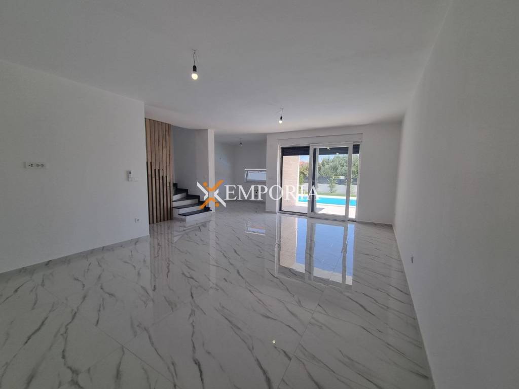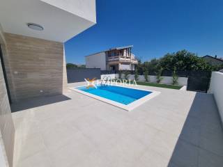 A beautiful, modern semi-detached house with a swimming pool is for sale on the southern side of the island of Vir. The price of the house includes a kitchen. It is located only 260 m from the sea.