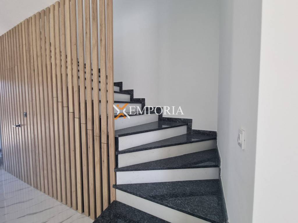 The house is built with brick thermal blocks with 10 cm thick Styrofoam thermal insulation. Floor coverings are tiles and laminate. The windows are made of PVC material with three-layer glass, electric blinds and mosquito nets. There is one air conditioner in each bedroom and in the living room. The entrance door of the house is anti-burglary.