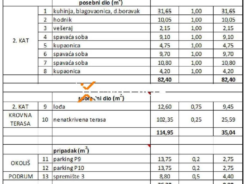 A spacious apartment with a roof terrace and an excellent sea view is for sale, located in the attractive Zadar neighborhood of Diklo, just 130 m from the sea and 4 km from the city center. The total net usable area including all annexes is 127.34 m².
