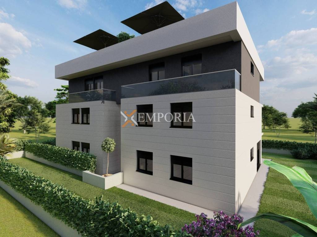 For sale is a modern apartment in Pakoštane, located 520 m from the sea and 650 m from the town center. The apartment is situated on the ground floor of a new building planned for 2026 and has a total net usable area of 91,38 m² including its additional spaces. A private garden of approx. 30 m² and the peaceful location add special value to this property.