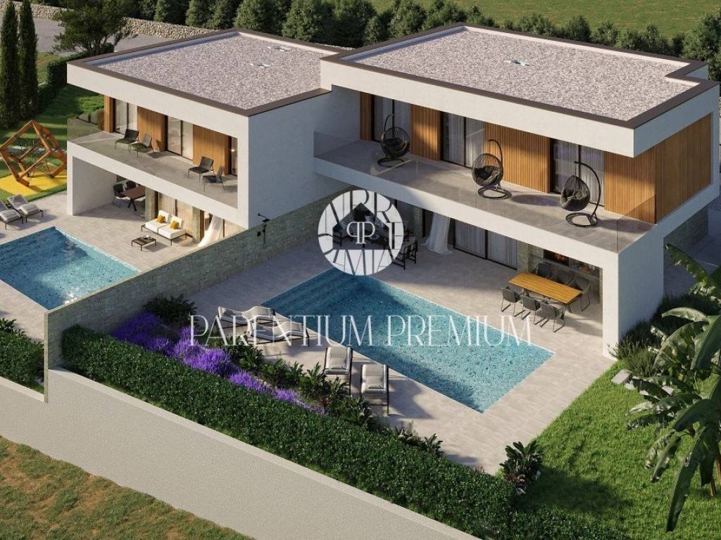 This high-quality and extremely modern semi-detached house with a pool and a view of the sea, with a total area of 186.54m2, is located in a beautiful and sought-after location.
