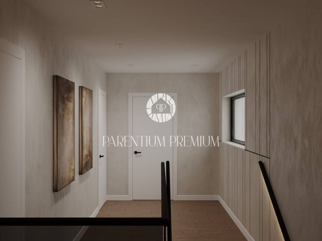The house is divided into 2 floors. The ground floor consists of an open living room, kitchen and dining room with large glass walls that are connected to a spacious and covered terrace, a heated pool and a sun deck around it. On this floor there is also a guest toilet, a technical room, a boiler room and an outdoor toilet. Upstairs there are 3 bedrooms with their own bathrooms and exits to the terrace with an unobstructed and soothing view of beautiful sunsets and the sea.