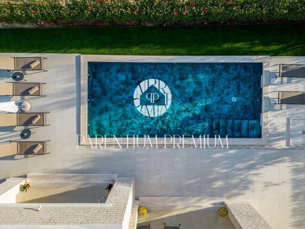 The villa is equipped with high-quality carpentry, a stone facade, is designerly equipped and decorated with custom-made Italian furniture and high-quality ceramics, sanitary ware, electric shutters, and mosquito nets.