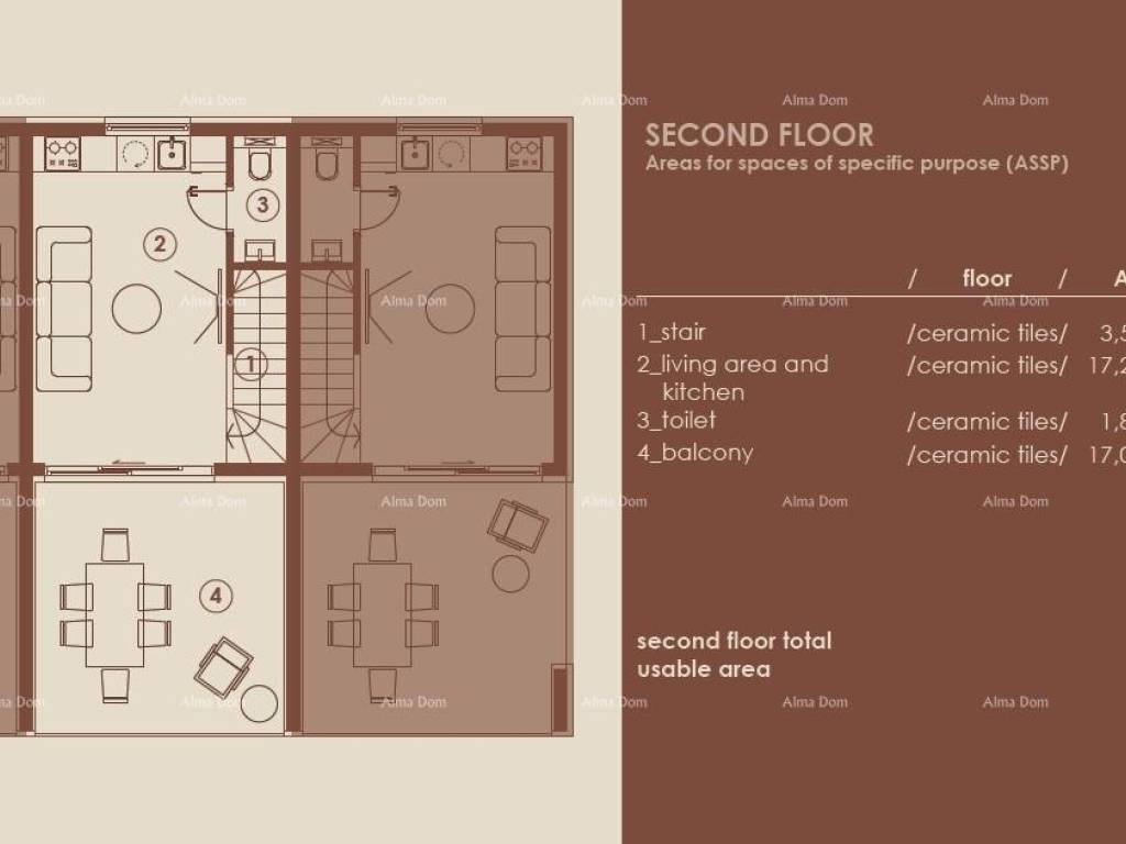 - Sea view from all three floors, with a particularly emphasized large terrace on the top floor, ideal for relaxation and enjoying the panorama.