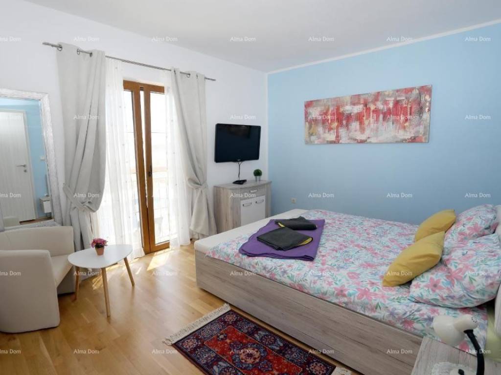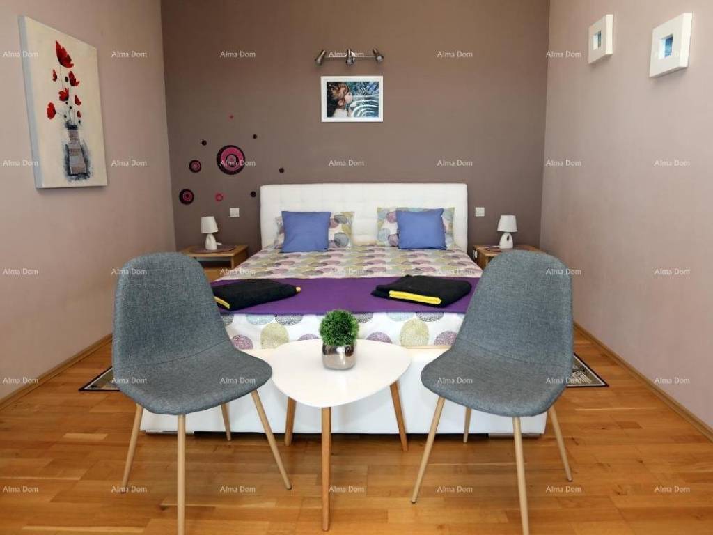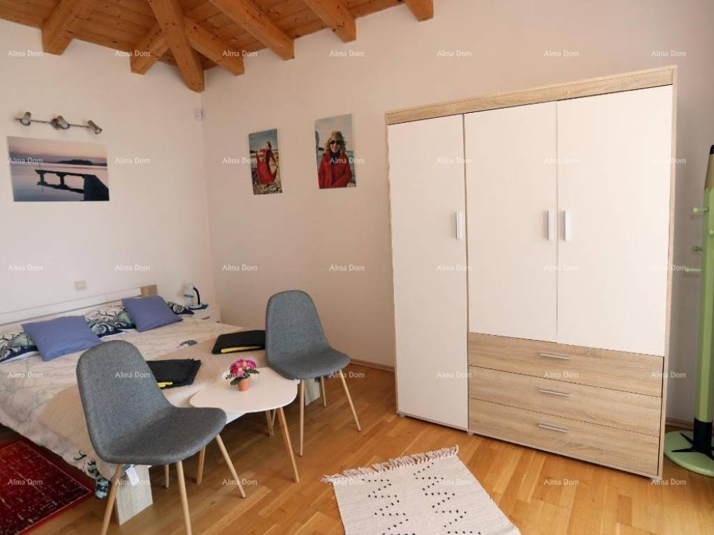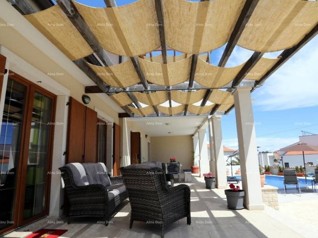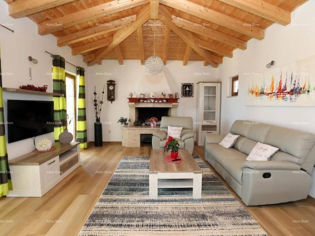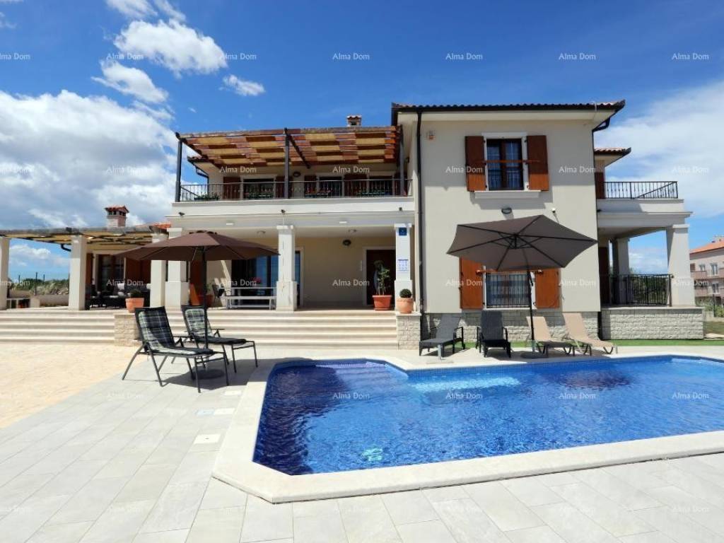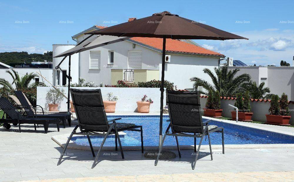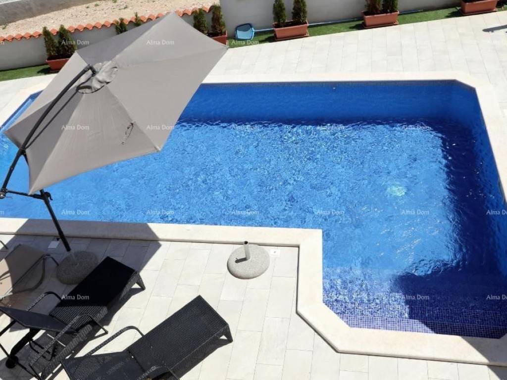 In a quiet part of Medulin, near the sea and the beach, this villa is beautifully located. On a plot of 1100 square meters, there is this fenced property, guests have a private outdoor pool of 9 x 4 m with hydromassage, children's playground, four parking spaces and barbecue.