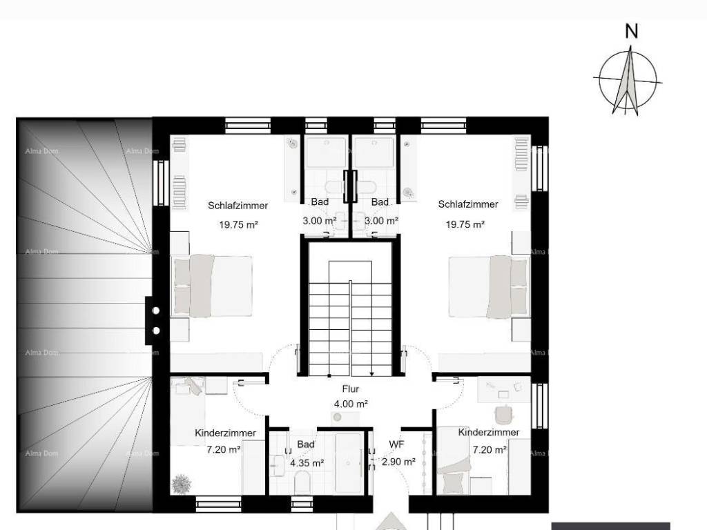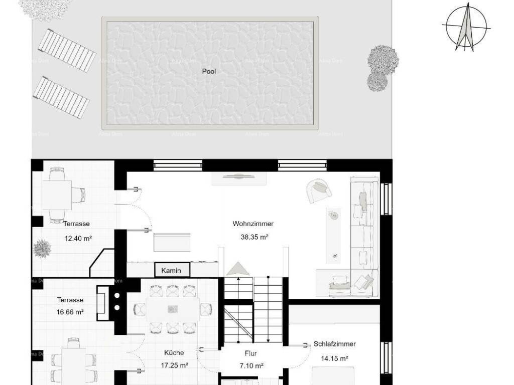 The highlight of this property is the beautifully landscaped garden that invites you to use it. Here you can spend relaxing hours on the terrace or enjoy a refreshing dip in your own pool.