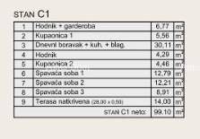 Apartment C1, with an area of 99.10 m, is located in building C.