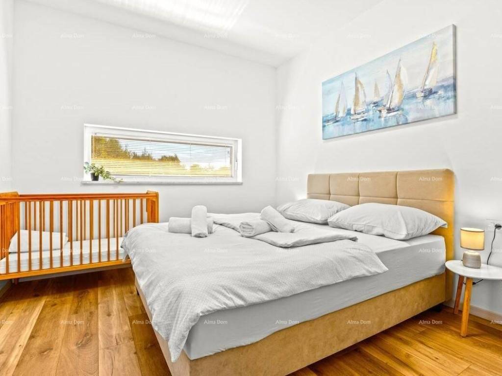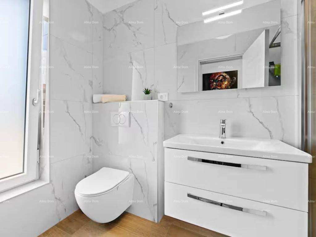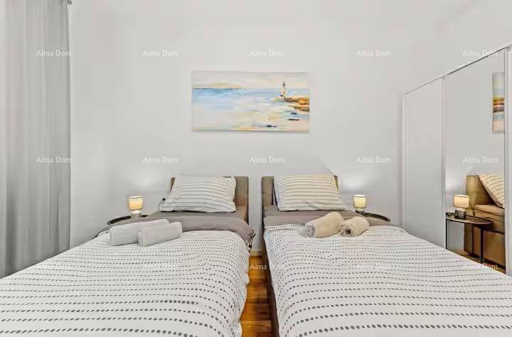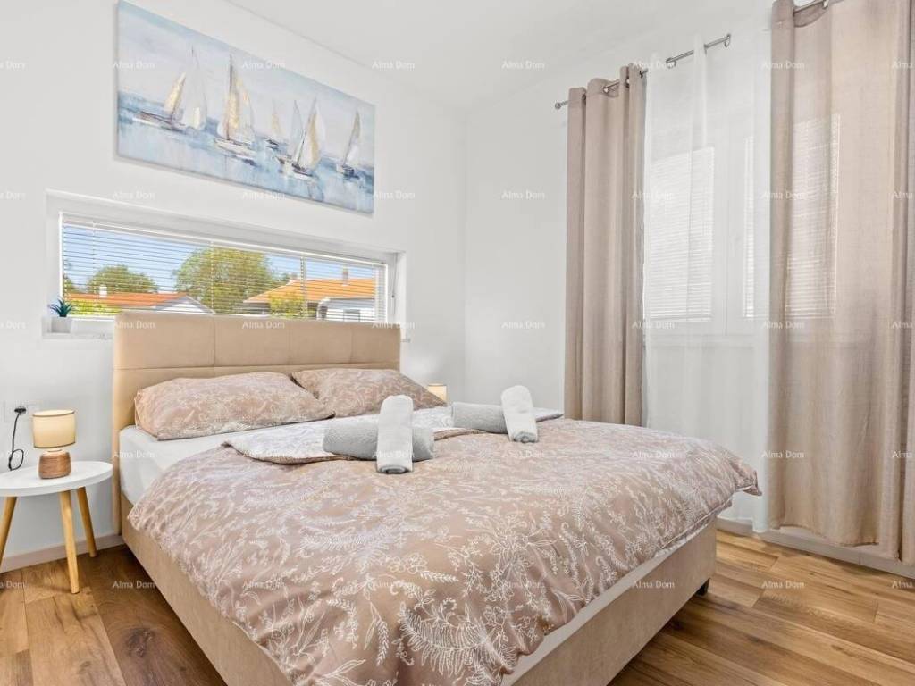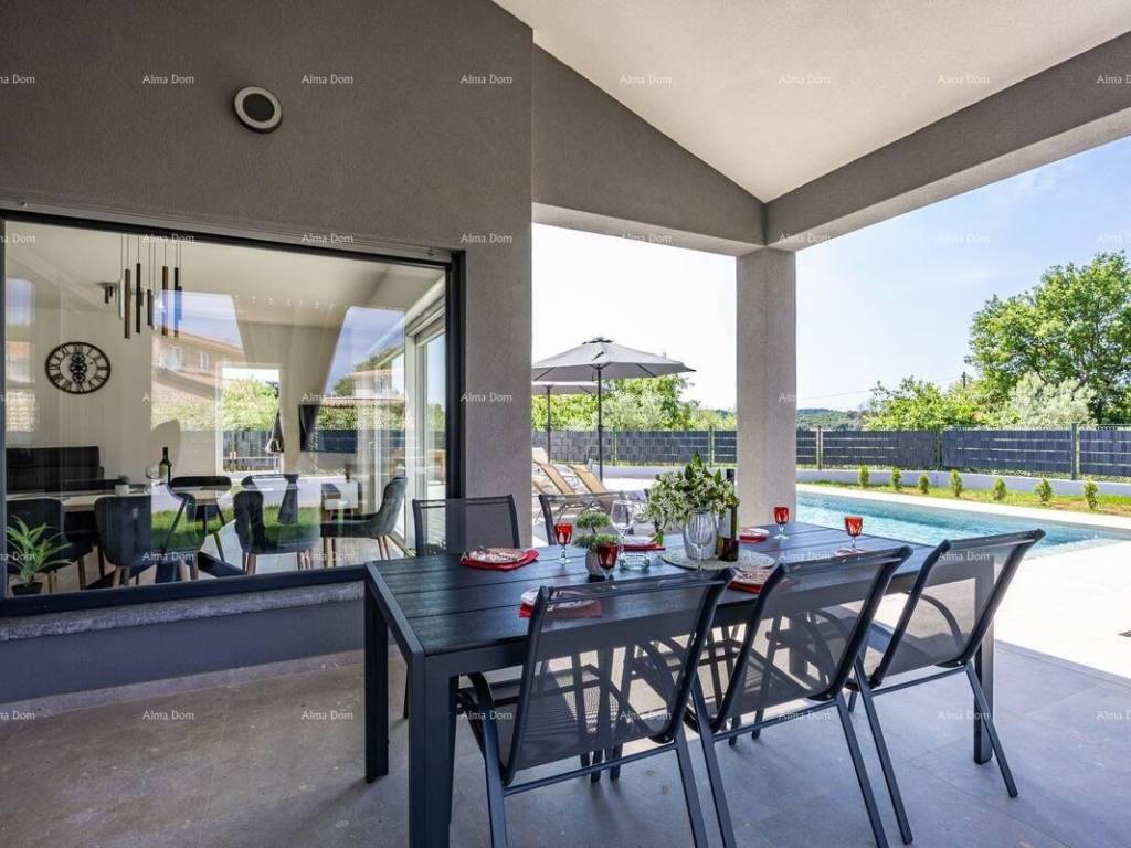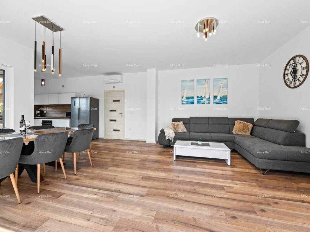 Close to Medulin! We offer a detached house consisting of a spacious hallway, a bathroom, a guest toilet, three bedrooms, and another bathroom, as well as a large living room with a kitchen and dining area. Large glass walls extend the entire length of the living room and kitchen. There is a large terrace in front of the house. The house is fully furnished and ready for immediate occupancy. Underfloor heating and air conditioning in every room. Parking available for two vehicles. Luxury single-story home!