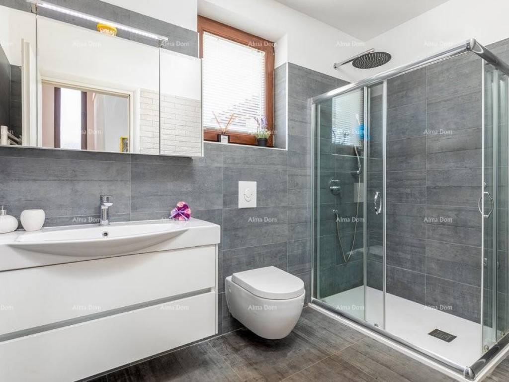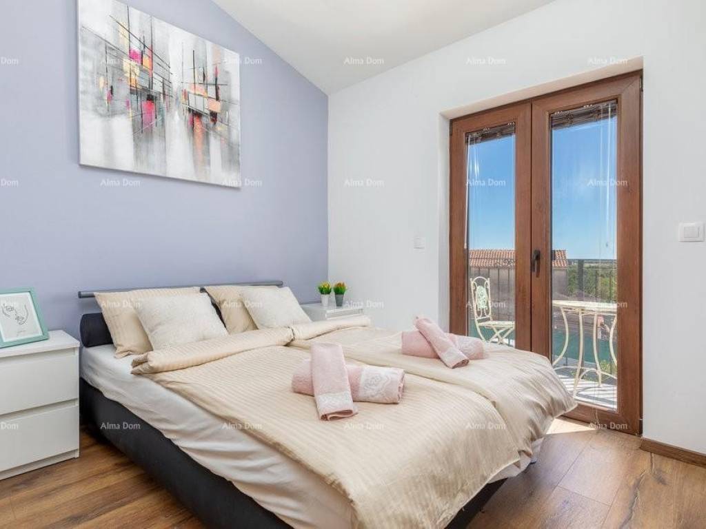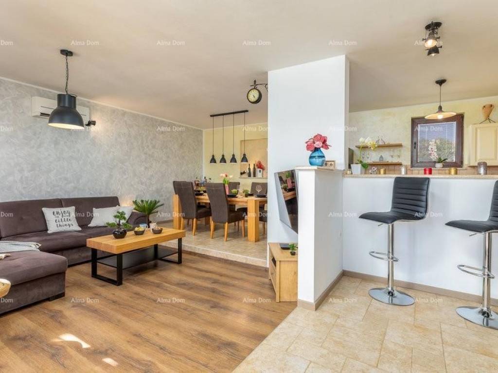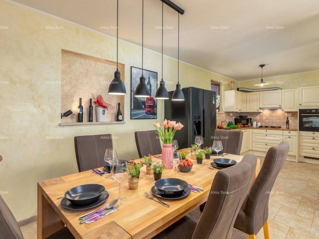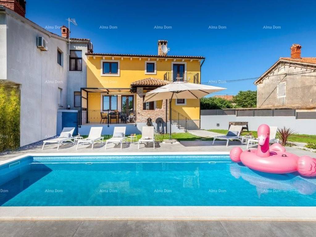We offer a semi-detached house near Pula. The house has been completely renovated and is suitable for tourist rental in the summer months. On a plot of 400m2 there is a swimming pool of 30m2. The house itself consists of a spacious living room and kitchen, three modern bedrooms, two bathrooms. Sold fully equipped. The distance from the sea is 6 km. Parking for three vehicles on the property.