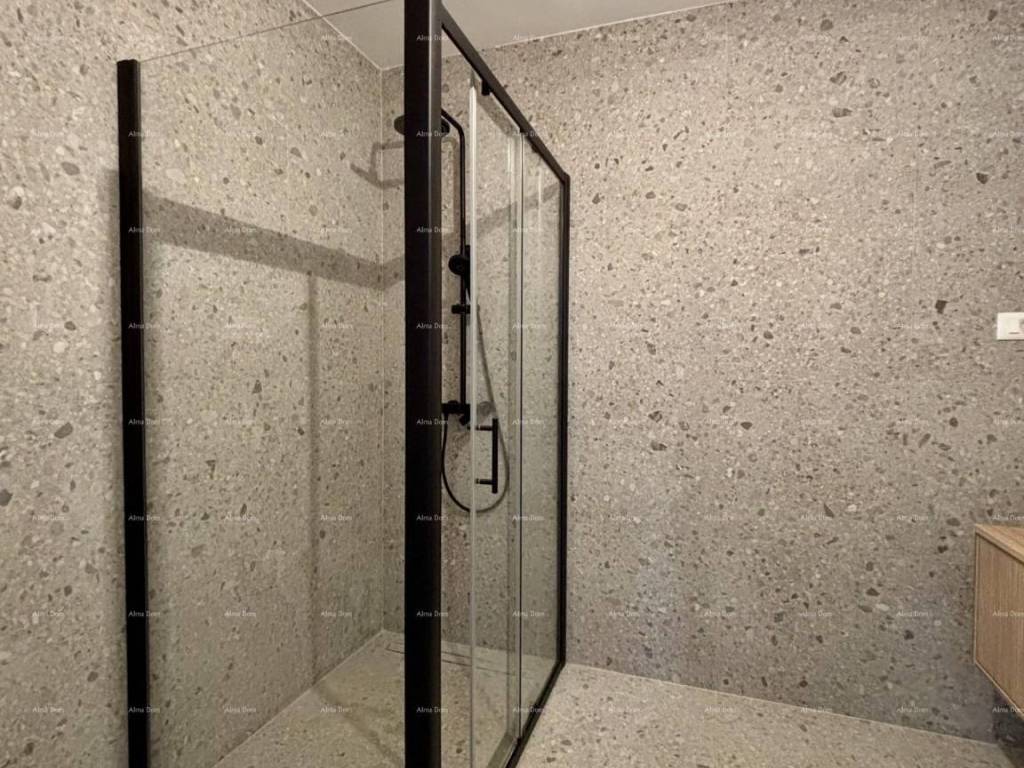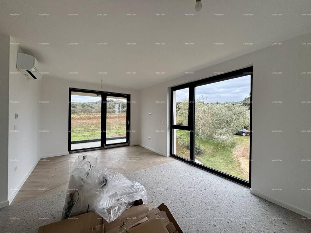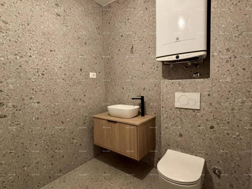 Apartment specifications: Exterior joinery - PVC with triple glazing and aluminum roller shutters with electric motor, facade - demit on the first floor 12 cm thick, on the ground floor 8 cm plus 2 cm Travertino bianco stone, cooling and heating - Mitsubishi air conditioners and electric underfloor heating in all rooms with wi-fi thermostats, final floor coverings - Marca Corona ceramic tiles. Interior designs are made for each apartment separately.