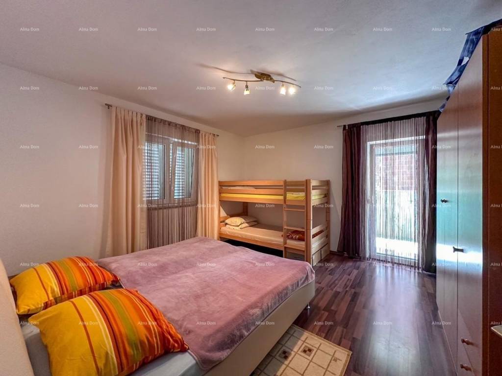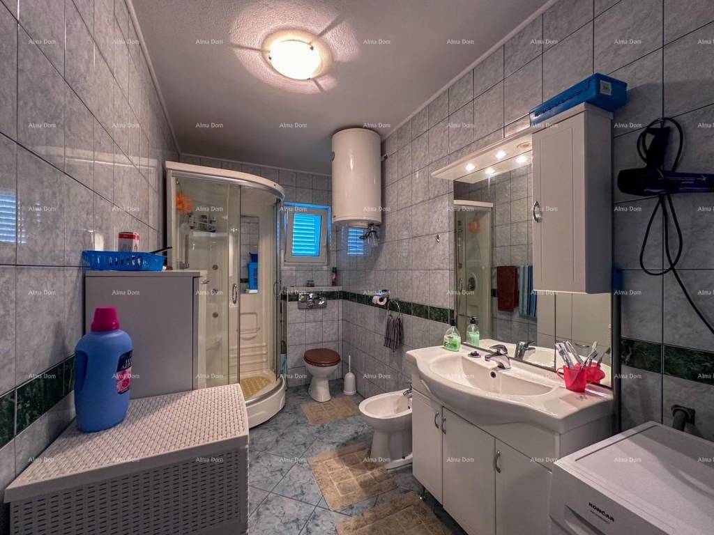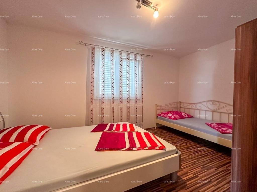 Each apartment consists of two bedrooms, bathroom, kitchen with dining room, living room and terrace . Both apartments have air conditioning, PVC joinery and are ready for immediate occupancy. The house also has a storage room in the basement, a garage, a parking lot in the garden, it is connected to the city sewer system, and all the preparations for separating the electricity and water meters have been made. It is sold fully furnished.