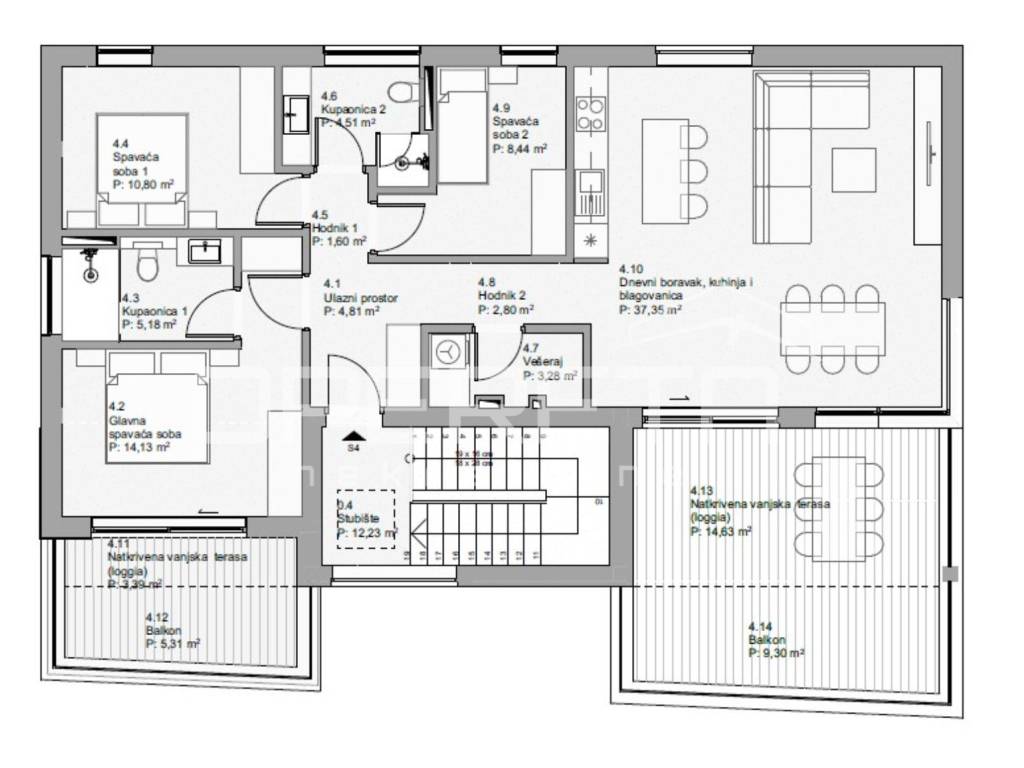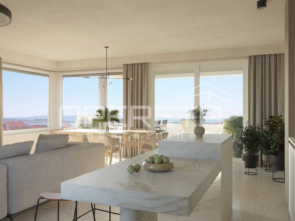 FOR SALE, PENTHOUSE IN NEW BUILDING, ISLAND OF PAG, POVLJANA In an excellent location on the island of Pag in Povljana, a penthouse in a new building is for sale. The unfinished phase has been completed and the roof insulation and carpentry are expected to be installed. The apartment is located on the second floor. It consists of 3 bedrooms, 2 bathrooms, an entrance hall, a hallway, a laundry room, a living room with a kitchen and a dining room, and 2 covered terraces and balconies. The total area of the apartment with calculated coefficients is 118.77 m2. The apartment has 2 outdoor parking spaces. The urban villa is 650 m from the sea and each apartment has a view of the sea on one side and a beautiful view of Velebit on the other. The apartments are equipped with rich and modern equipment. An additional storage room is also available for the penthouse. More information on request.