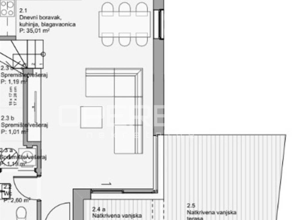 FOR SALE, NEWLY BUILT APARTMENT, ISLAND OF PAG, POVLJANA In an excellent location on the island of Pag in Povljana, a two-story apartment in a new building is for sale. The unfinished phase has been completed and the roof insulation and carpentry are expected to be installed. The apartment is located on the ground floor and on the first floor. The ground floor consists of a living room, kitchen and dining room with access to a covered terrace and garden, toilet, storage room and laundry room. The stairs lead to the second floor, which has 3 bedrooms, a bathroom, hallway and access to a covered terrace and balcony. The total area of the apartment with calculated coefficients is 107.42 m2. The apartment also has 2 outdoor parking spaces. The urban villa is 650 m from the sea and each apartment has a view of the sea on one side and a beautiful view of Velebit on the other. The apartments are equipped with rich and modern equipment. This apartment also has a storage room available as well as the possibility of digging an additional small swimming pool. More information on request.