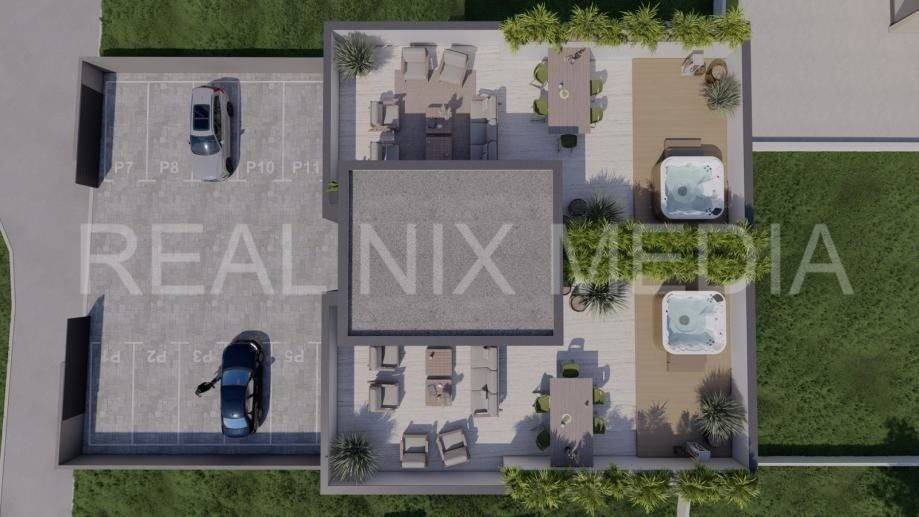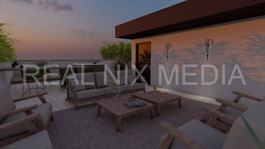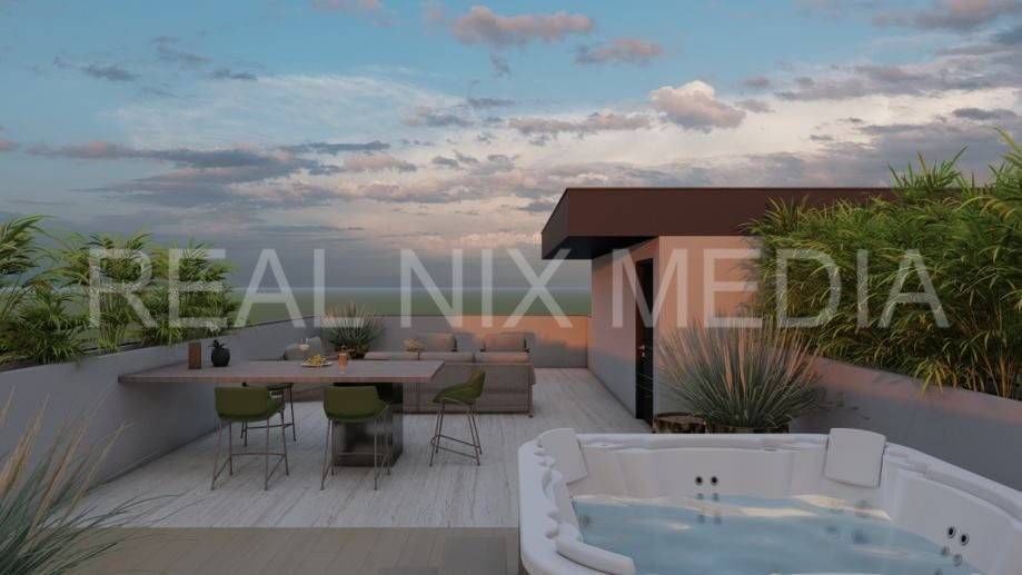 Krovna terasa predstavlja poseban luksuz savršena je za jacuzzi, lounge zonu, sunčalište ili ljetnu kuhinju, a izdvaja ovaj apartman kao nekretninu visoke kategorije.